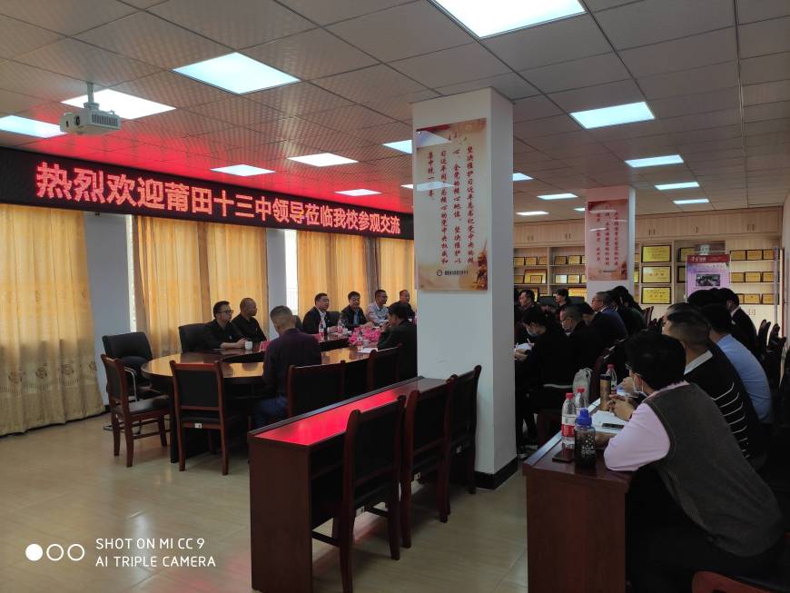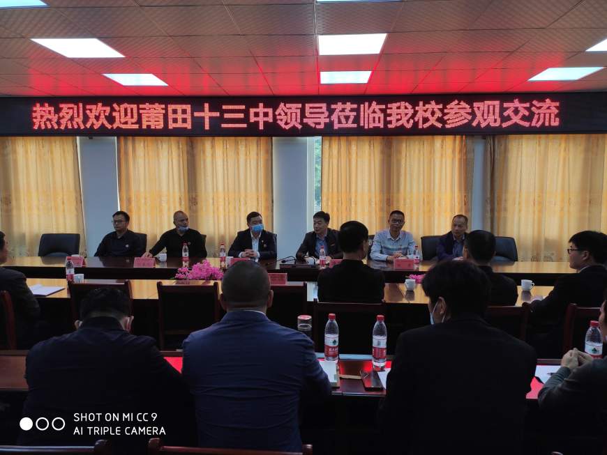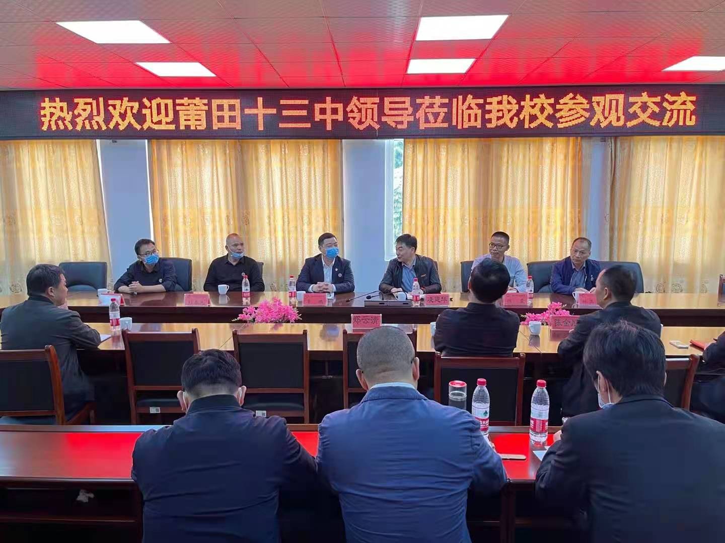 3月29日上午,莆田十三中校长李鹏带领中层及以上干部一行22人到我校开展参观交流活动。校党支部书记、校长凌建华、副校长王赛静、陈金朋、郑云清及各处室负责人热情接待了到访嘉宾。