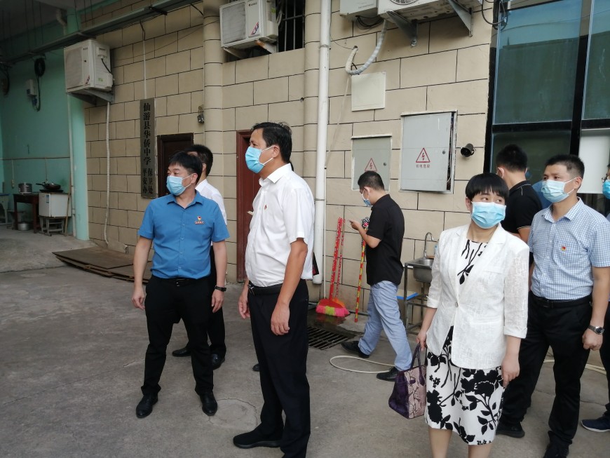 吴文恩书记详细了解了学校目前疫情防控和复学准备工作等情况,认真核实了学校复学核酸检测和学生到位的情况,充分了解侨中在健康监测、宣传教育、食品及校园安全管理、环境整治、防疫物质储备等方面的准备情况。凌建华校长向调研组一行汇报了学校恢复线下教学的各项准备工作,详细介绍了我校创建“无疫校园”的方案和具体措施。