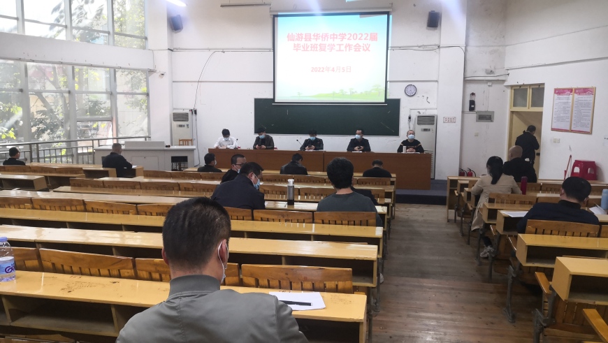 根据县新型冠状病毒感染肺炎防控工作应急指挥部部署及县教育局的工作通知,我校毕业班与非毕业班将分别于4月6日和9日恢复线下教学。为确保师生顺利有序返校复课,筑牢全校师生生命健康安全防线,4月5日下午3点,仙游侨中召开2022届两级毕业班复学工作会议。校党支部书记、校长凌建华、副校长王赛静、陈金朋、郑云清出席会议,处室负责人、两级毕业班班主任、年段长、物业经理、食堂负责人和管理人员参加会议,会议由办公室主任朱清锋主持。