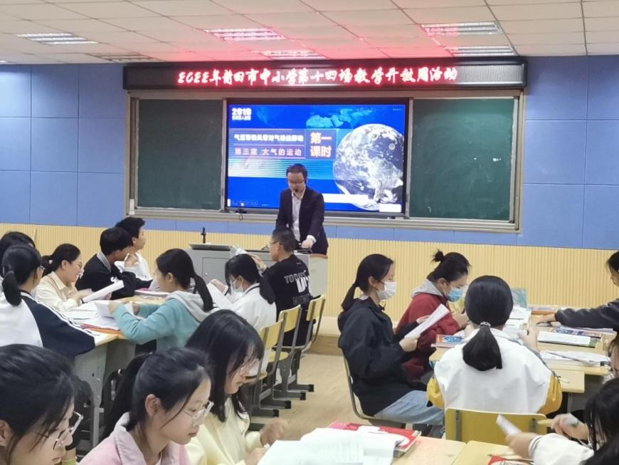 2022年11月3日上午在仙游县华侨中学录播室1举行了地理学科活动。第一节课来自仙游华侨中学陈群生老师《气压带和风带对气候的影响》教学观摩课。陈群生老师通过我国江南水乡与北非撒哈拉沙漠两者之间虽地在同一纬度但气候类型不同,且景观差异显著的视频导入,通过激发学生的学习兴趣来进入《气压带风带对气候的影响》这节课。整节课紧贴新课程理念并充分利用学生身边熟悉的案例,循序渐进引入大气环流对气候的影响,通过三个典型地区气候案例的剖析,落实高考地理素养中区域认知和地理实践力的能力培养,并最终实现学生对影响气候因子进行知识建构的目的。课堂中利用典型的切合知识点的习题讲评,让学生将所学知识进行及时有效巩固和提升,培养学生的逻辑思维和创新能力。课堂中能给学生充分自主学习和讨论交流的时间,由老师设计主导课堂,学生真正成为课堂的主体,实现高效课堂的教学目的。