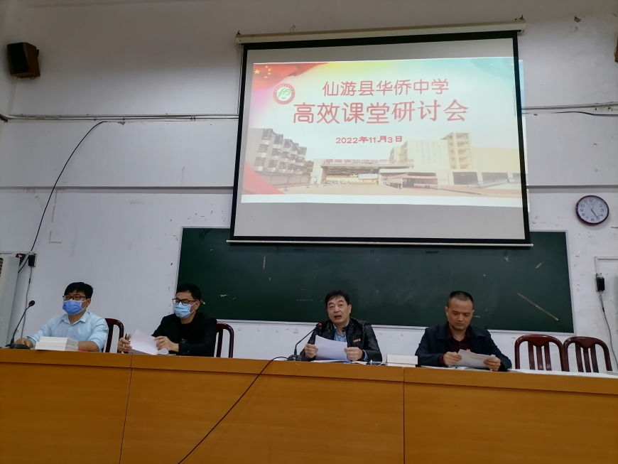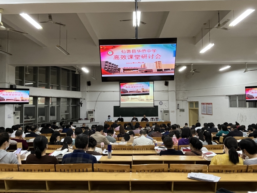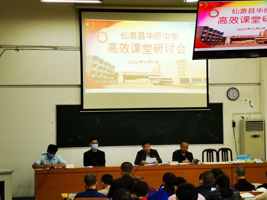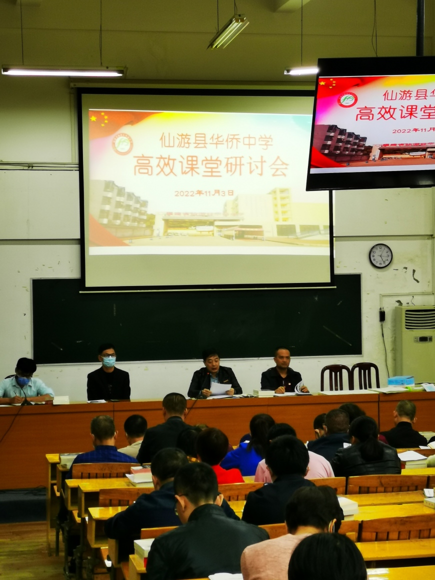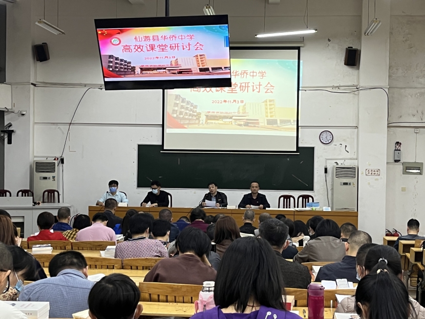 为认真落实市委宣传部、市教育局有关高效课堂建设工作部署,进一步深化课堂教学改革,巩固高效课堂实验成果,促进学校高效课堂向更深层次发展,形成学校的办学特色,2022年11月3日下午,我校隆重召开“仙游县华侨中学高校课堂研讨会”,本次会议由办公室主任朱清锋主持,全体教职工参加会议。