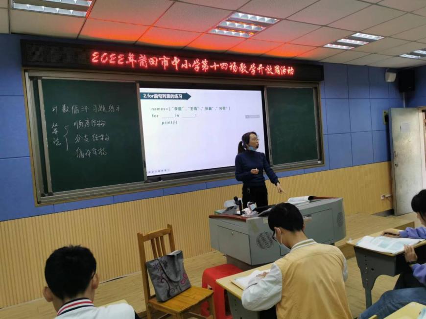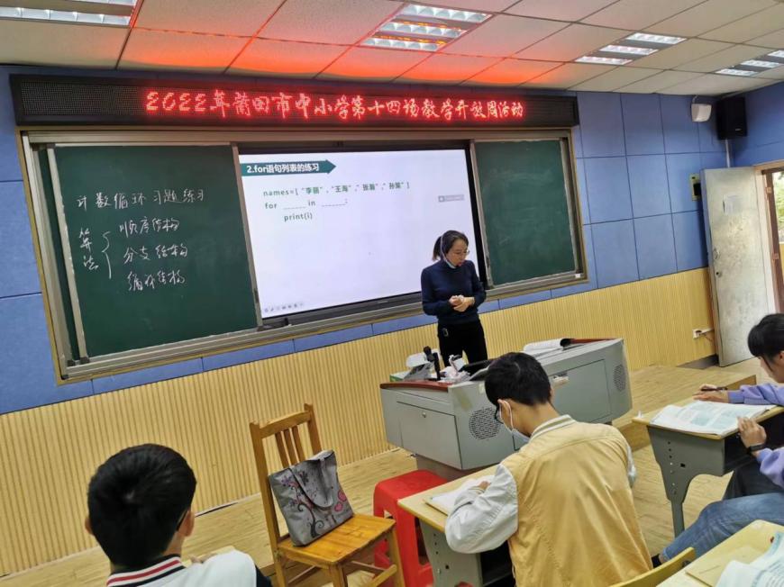 2022年11月1日上午,信息技术学科市级公开课观摩活动于我校录播室1如期举行,本次市教育教学化学科开放活动由仙游县进修学校黄震宇老师主持,市县各校教师代表莅临参加,共聚一堂。本次活动活动分为四个议程:一、仙游县华侨中学的李炜教师进行课题《计数循环》的公开课;二、仙游县华侨中学的郭倩倩教师进行课题《计数循环》的公开课的公开课;三、仙游县进修学校的黄震宇教师进行《信息技术学科论文撰写研究》的讲座;四、全体与会老师共同评课、共同研讨。