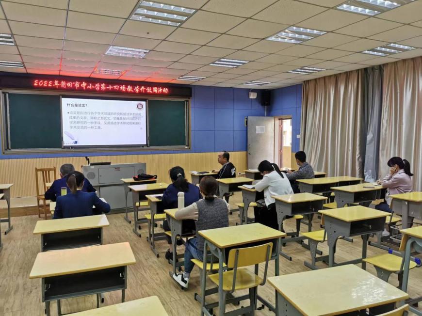 上午第三节,进修学校黄震宇教师针对一线教师在撰写和发表教育教学论文中常见的一些注意事项和问题给大家做了主题为《信息技术学科论文撰写研究》的讲座,他从了解我们写发论文的目的;要撰写什么类型的论文;应该将论文发表在哪里;投稿与见刊、见网的时间;等给大家做了详细的讲解,让大家平常多收集些教育教学的案例,多积累些教学经验,它是它既是探讨问题进行学术研究的一种手段,又是描述学术研究成果进行学术交流的一种工具。