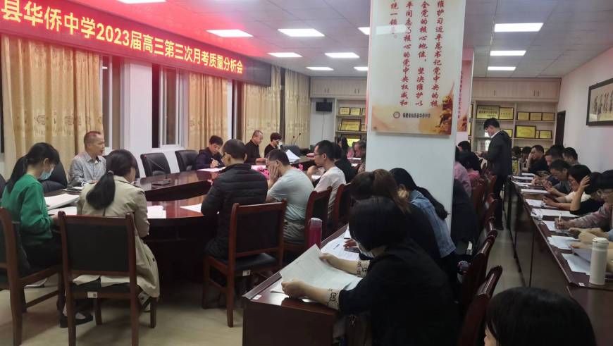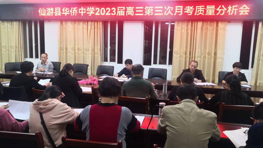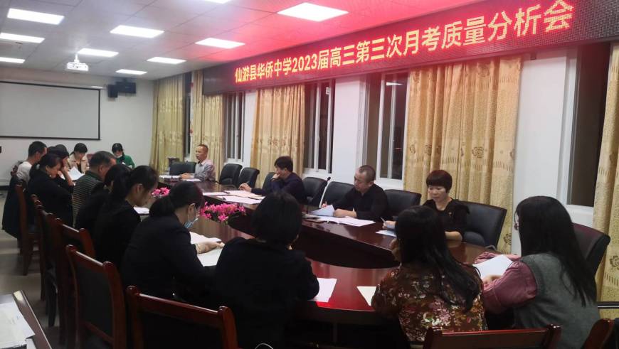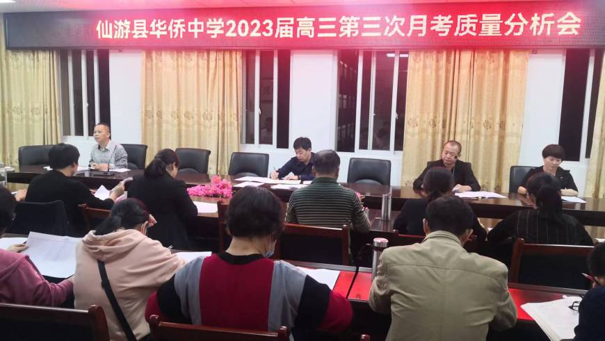 为进一步提高教学质量,强化教学管理,11月16日晚上,仙游侨中召开高三年级第三次月考质量分析会。会议由高三年级段长戴美西主持,校长凌建华、副校长郑云清、教务处主任李宗祥出席会议并做工作指导。