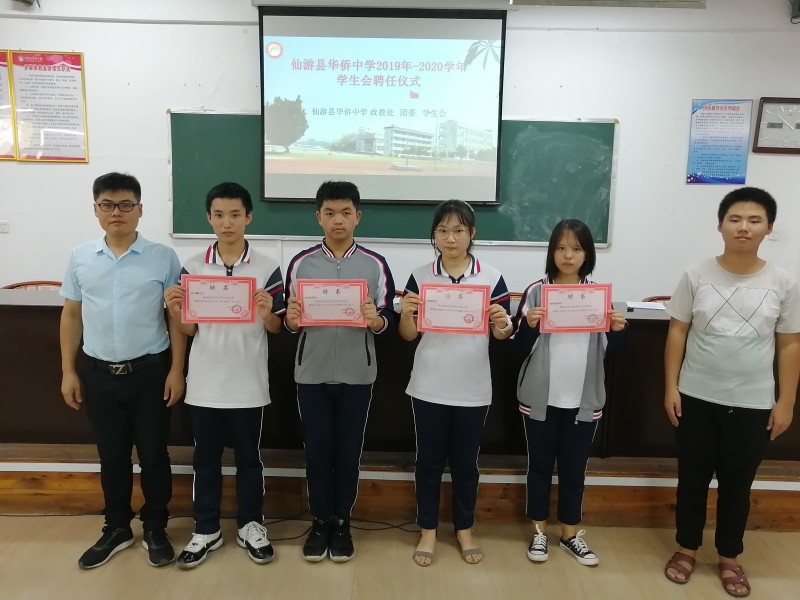 选入主席团的同学也进行了表态。他们表示,一定会遵守学校的各项规章制度,做好老师的左膀右臂,积极做好各项工作,热心帮助服务同学,努力学习,励志成才,带领全体同学共同进步。 最后,团委朱老师和陈雨帅同学为入选主席团的学生颁发了《仙游县华侨中学学生会干部聘任书》。 ![]() 本次聘任仪式,切实加强了学生会的管理机制,增强了学生主人翁的意识,促进了我校学生日常行为规范,对创建文明校园、美丽校园起到重要的推进作用!
