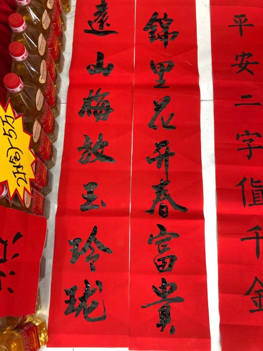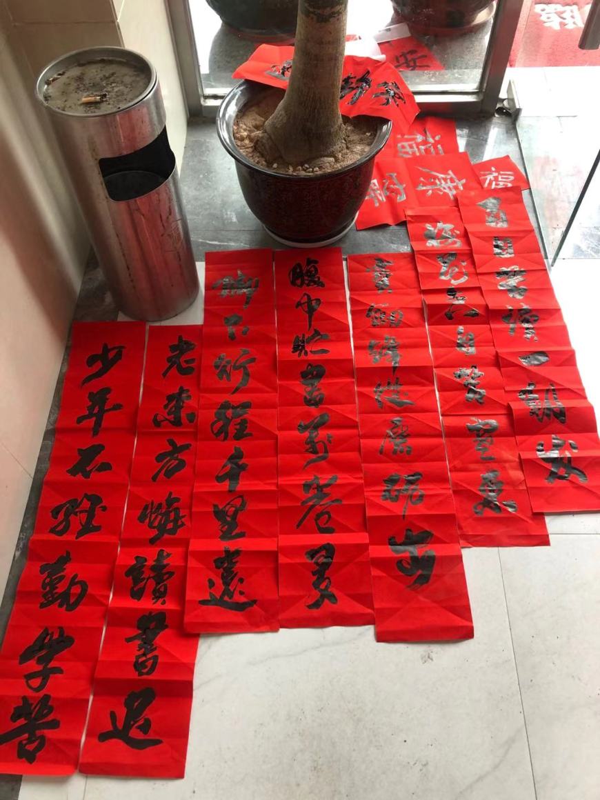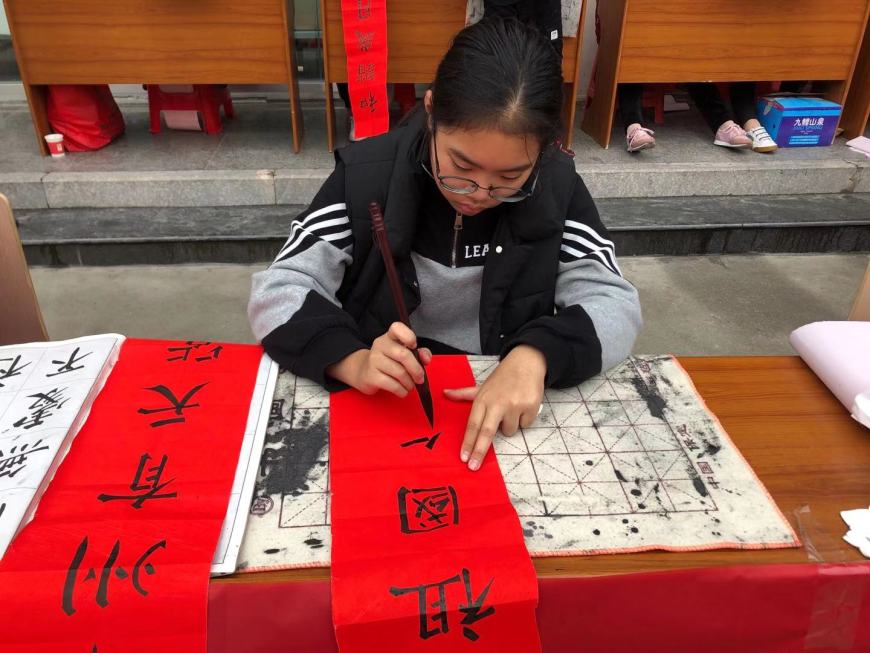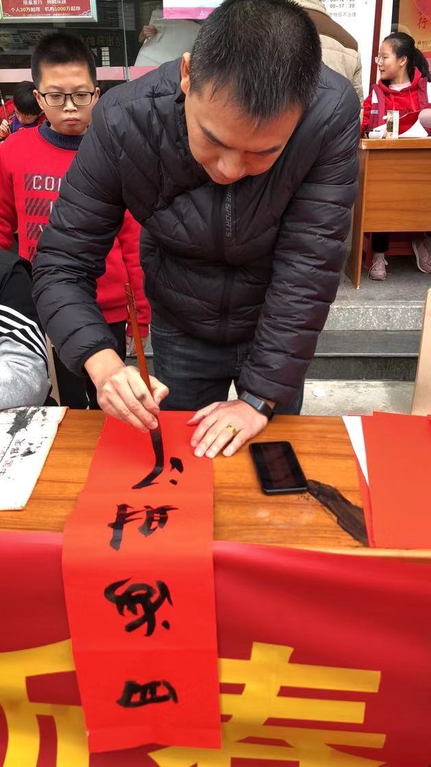 2020-01-18仙游县华侨中学 ![]() ![]() ![]() ![]() 迎 新 春 千家万户曈曈日,总把新桃换旧符。贴春联是我国一种悠久的文化传统和习俗,寄托人们辟邪除灾,迎祥纳福的美好愿望,增加节日的喜庆氛围,1月17日恰逢农历小年,积极响应国家2020年“我们的中国梦-文化进万家”的活动号召,弘扬优秀传统文化活跃群众文化生活,营造浓厚春节文化氛围, 1月17日上午,仙游侨中团委组织学校师生十几名志愿者到赖店信用社前广场以“墨香迎新春 祝福送春联”为主题的义务为当地群众书写春联送祝福活动。