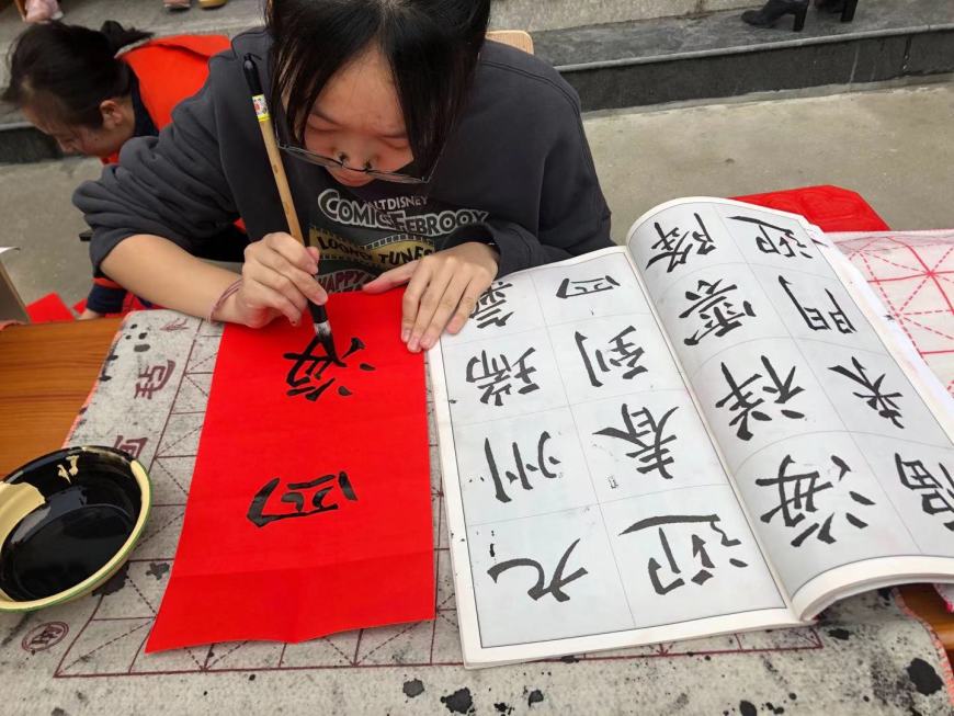 ![]() ![]() 半盏屠苏犹半举 灯前小草写桃符 ![]() ![]() ![]() ![]() ![]() ![]() ![]() ![]() ![]() ![]() ![]() ![]() ![]() 晓寒料峭尚欺人 春态苗条福先到。活动现场,天气骤降,寒风刺骨。志愿服务队的付正兵、郑英凡、傅开宏和林金清等老师带领学生不顾寒冷,摆好笔墨纸砚,立马投入到了为群众服务的行列中去,为闻讯起来的和路过的群众们写春联;保卫处主任林德芳、总务处副主任王秋金、团委吴贞贞、傅福强等老师在现场折纸、剪纸;书法社的小书法家们也一丝不苟凝神静气写出了一幅幅精美的春联;这些春联内容新颖,字体多样,涵盖了隶书、楷书、行书等各种字体。志愿者们折纸、铺开、执笔、挥毫,一支毛笔、一张红纸、一双巧手......一副副漂亮的春联新鲜“出炉”,一张张单调的红纸变成了鲜活的作品。一时间,前来索要的群众络绎不绝,飘着墨香的春联很快就被热情的群众“一抢而空”,成了群众们抢手的“精神年货”。无联不成春,有联春更浓。一行行俊逸的书法,一句句祝福的言语,给新年带来了几分欢乐,几分祥和。 ![]() ![]() ![]() ![]() ![]() 活动现场热闹非凡,处处洋溢着欢声笑语和喜庆祥和的节日氛围。师生们的形式多样满含节日祝福的春联赢得了大家的称赞,满满的寄托了侨中师生对新年的美好祈愿和祝福。 ![]() 横平竖直皆风骨 飞扬撇捺是血脉 ![]() ![]() ![]() ![]() ![]() 作品展 ![]() ![]() ![]() ![]() ![]() ![]() ![]() ![]() ![]() 图:吴贞贞 文:林美荣 编辑:林美荣 审核:朱清锋 |