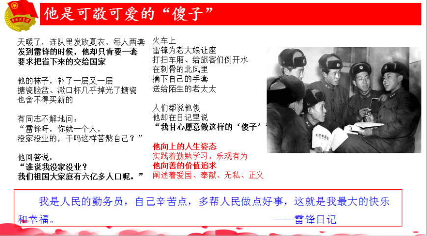 ![]() ![]() ![]() 二、何为雷锋精神? 视频《雷锋精神代代传》 ![]() ![]() ![]() ![]() ![]() ![]() 三、凡人英雄,致敬志愿者 致敬志愿者