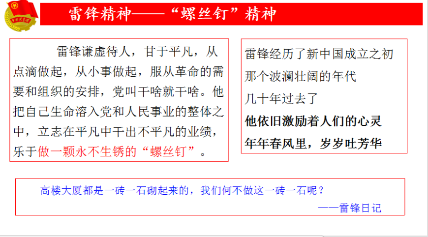 这个响亮的名字, 像春风一样吹遍祖国大地, 成为几代中国人的共同回忆。 “雷锋精神” 已深深锲入中国这片土地中, 成为中华民族精神闪亮的符号。
