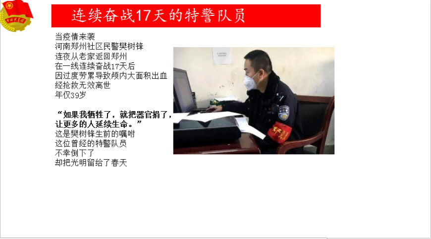 救治病人,逆行而上 疫情防控,日夜值守 八方驰援,慷慨解囊