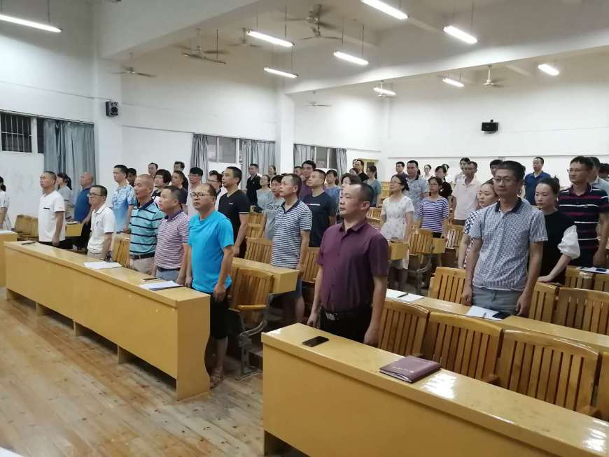 ![]() 大会在雄壮的《国歌》声中开幕。校党支部书记凌建华同志代表上届支委会作工作报告。报告对三年多来学校党支部的工作情况进行了回顾,总结了取得的成绩和经验,指出了存在的不足,对学校下届支委会工作提出建议,并希望全校党员认真贯彻落实党的十九大和十九届二中、三中、四中全会精神,进一步解放思想,开拓创新,精诚团结,勤奋工作,充分发挥党支部的战斗堡垒作用以及党员的先锋模范作用,为实现顺利通过省一级达标高中复查评估、推进我校教育事业的持续健康发展,再创佳绩,再立新功。会上,副校长王赛静同志宣读了县教育局党委同意学校支部换届改选的批复意见,副校长陈金朋同志宣读了本次支部换届选举大会选举办法。