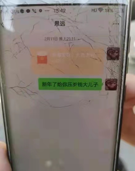 除夕夜,肖思远的母亲,在微信上给儿子发了一个压岁红包。