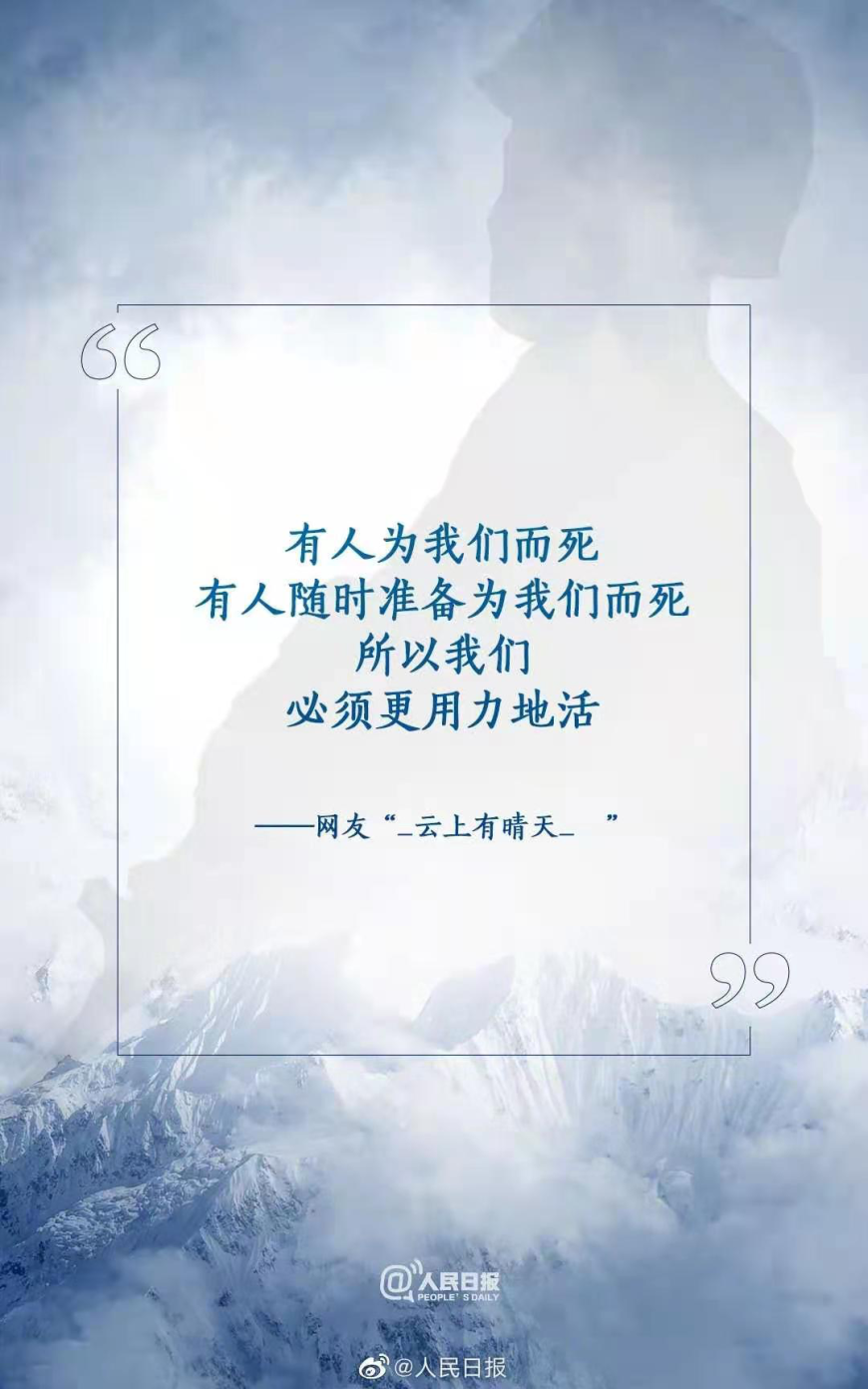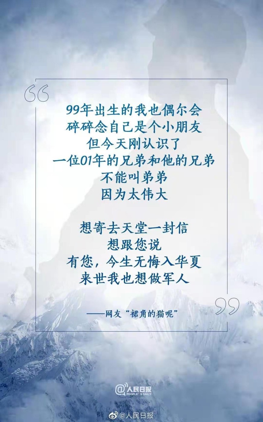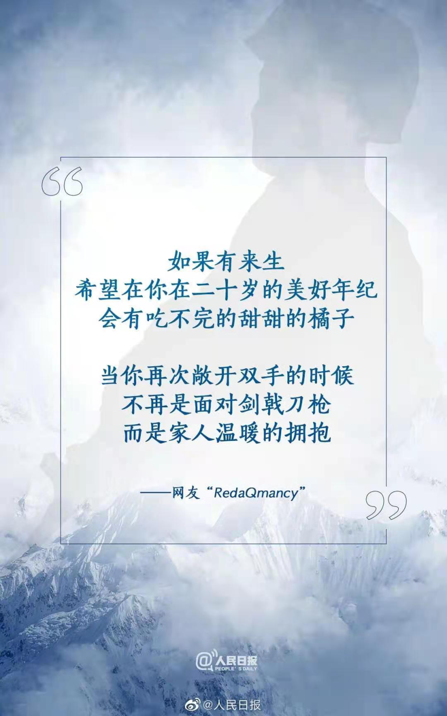 牺牲时不满19岁的陈祥榕曾在日记里写下:“清澈的爱,只为中国。”是他们用青春、鲜血,乃至生命,誓死守护祖国山河!