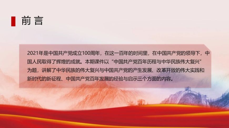 2021年是中国共产党成立100周年,在这一百年的时间里,在中国共产党的领导下,中国人民取得了辉煌的成就。本文以“中国共产党百年历程与中华民族伟大复兴”为题,为广大网友讲解了中华民族的伟大复兴与中国共产党的产生发展、改革开放的伟大实践和新时代的新征程、中国共产党百年发展的经验与启示三个方面的内容。