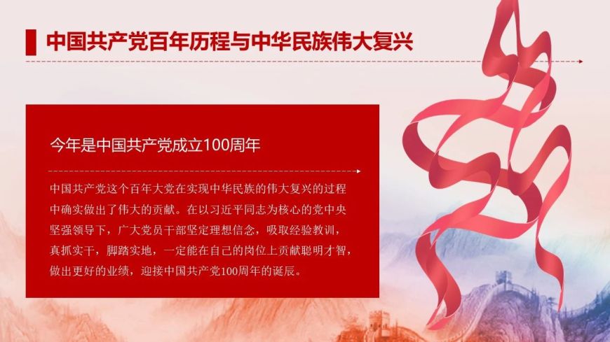 今年是中国共产党成立100周年,中国共产党这个百年大党在实现中华民族的伟大复兴的过程中确实做出了伟大的贡献。我相信,在以习近平同志为核心的党中央坚强领导下,广大党员干部坚定理想信念,吸取经验教训,真抓实干,脚踏实地,一定能在自己的岗位上贡献聪明才智,做出更好的业绩,迎接中国共产党100周年的诞辰。