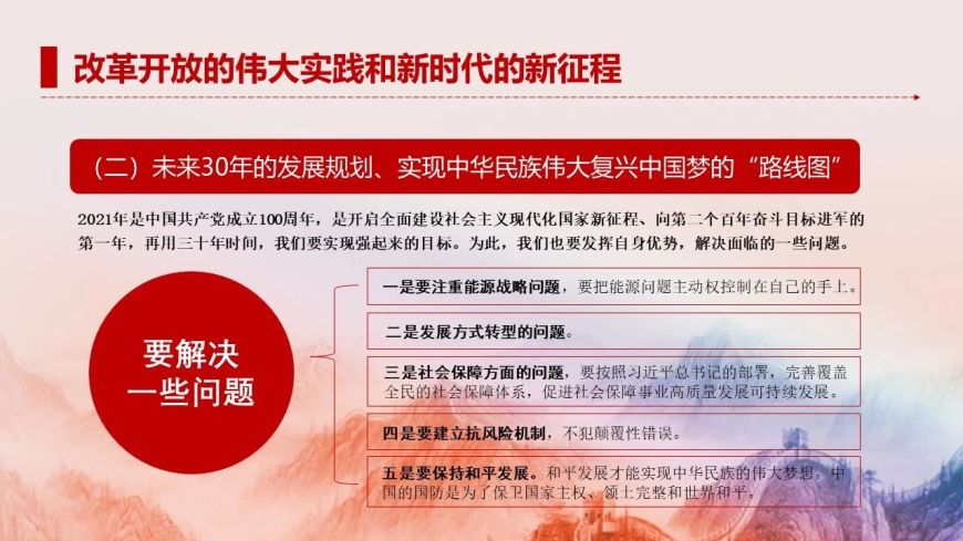 (二)未来30年的发展规划、实现中华民族伟大复兴中国梦的“路线图”