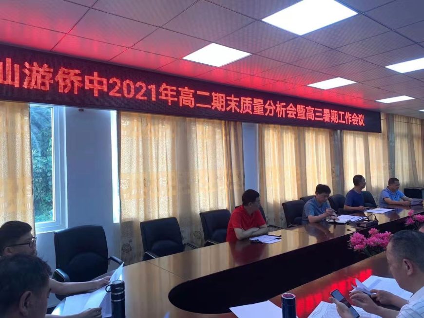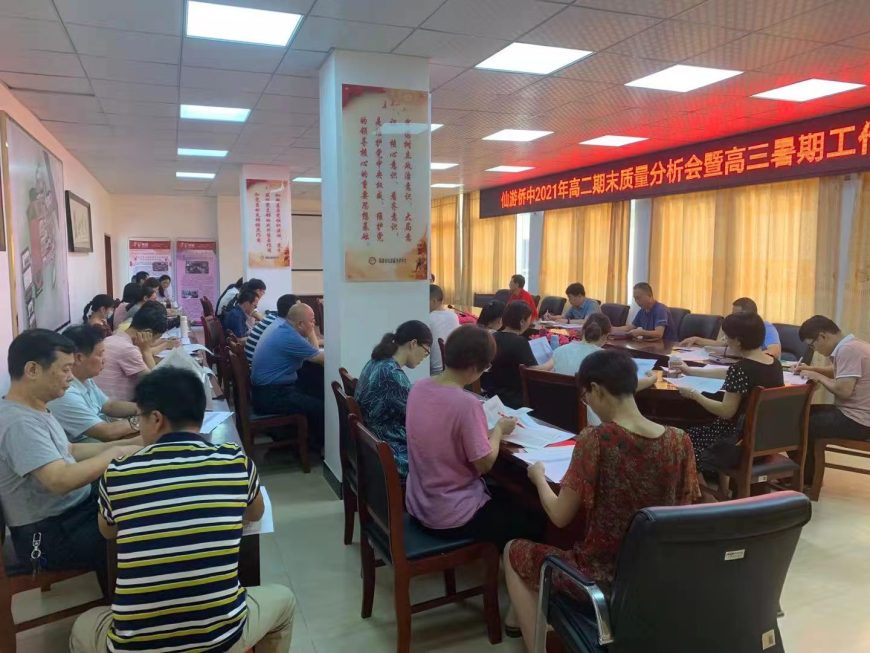 7月23日下午4点在办公楼三楼会议室召开仙游侨中2021年高二期末市质检分析会暨高三暑期工作会议。凌建华校长、王赛静副校长、新高三年级全体老师参加了会议。会议由高三年段长林建清主持。