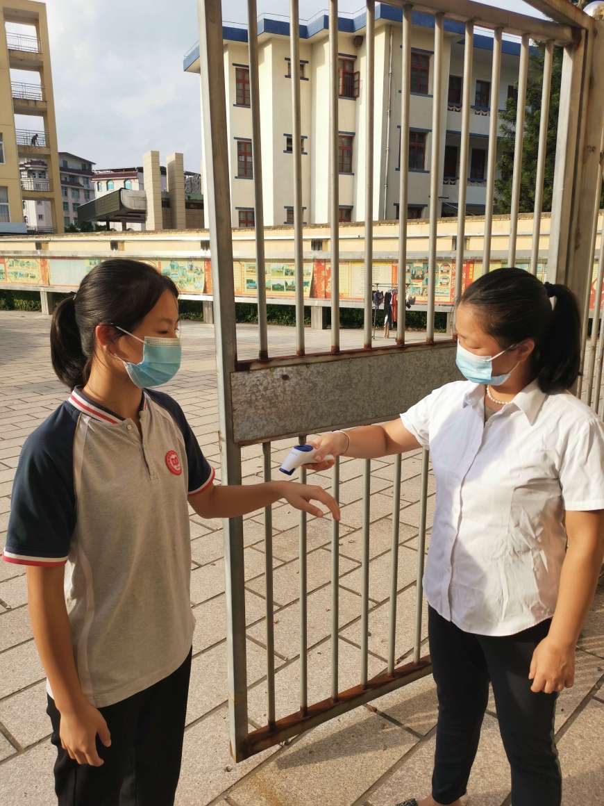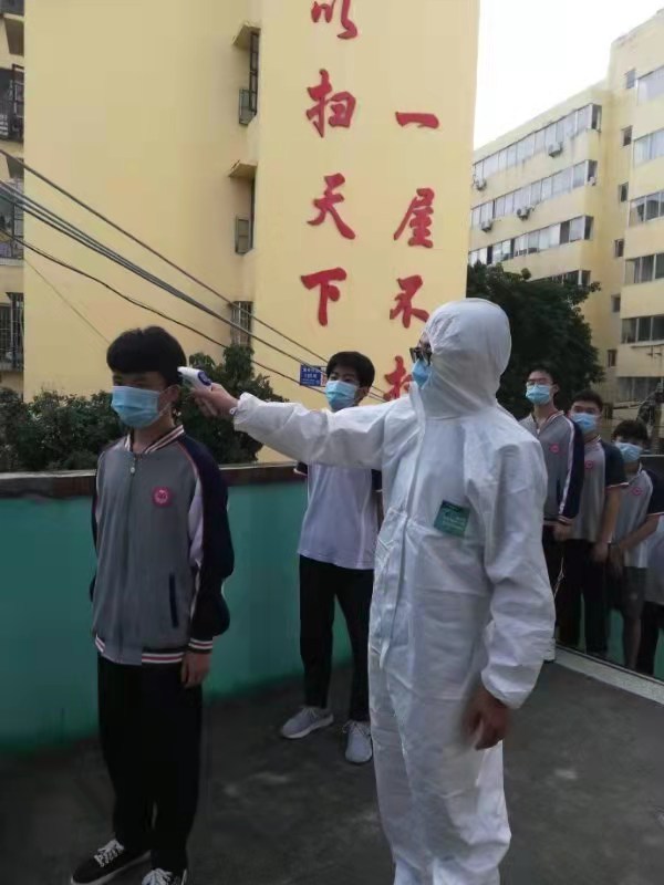 进入教室前,班主任再次逐一对学生进行体温监测,配班老师负责填写学生体温健康登记卡,学生体温正常方可进班。学生在上课期间发生身体不舒服,如发烧、咳嗽、呕吐等情况,老师立即用红外线额温枪对学生进行体温检测,如体温超过37.3℃,送该生到隔离室,并立即向学校应急领导小组组长电话汇报。