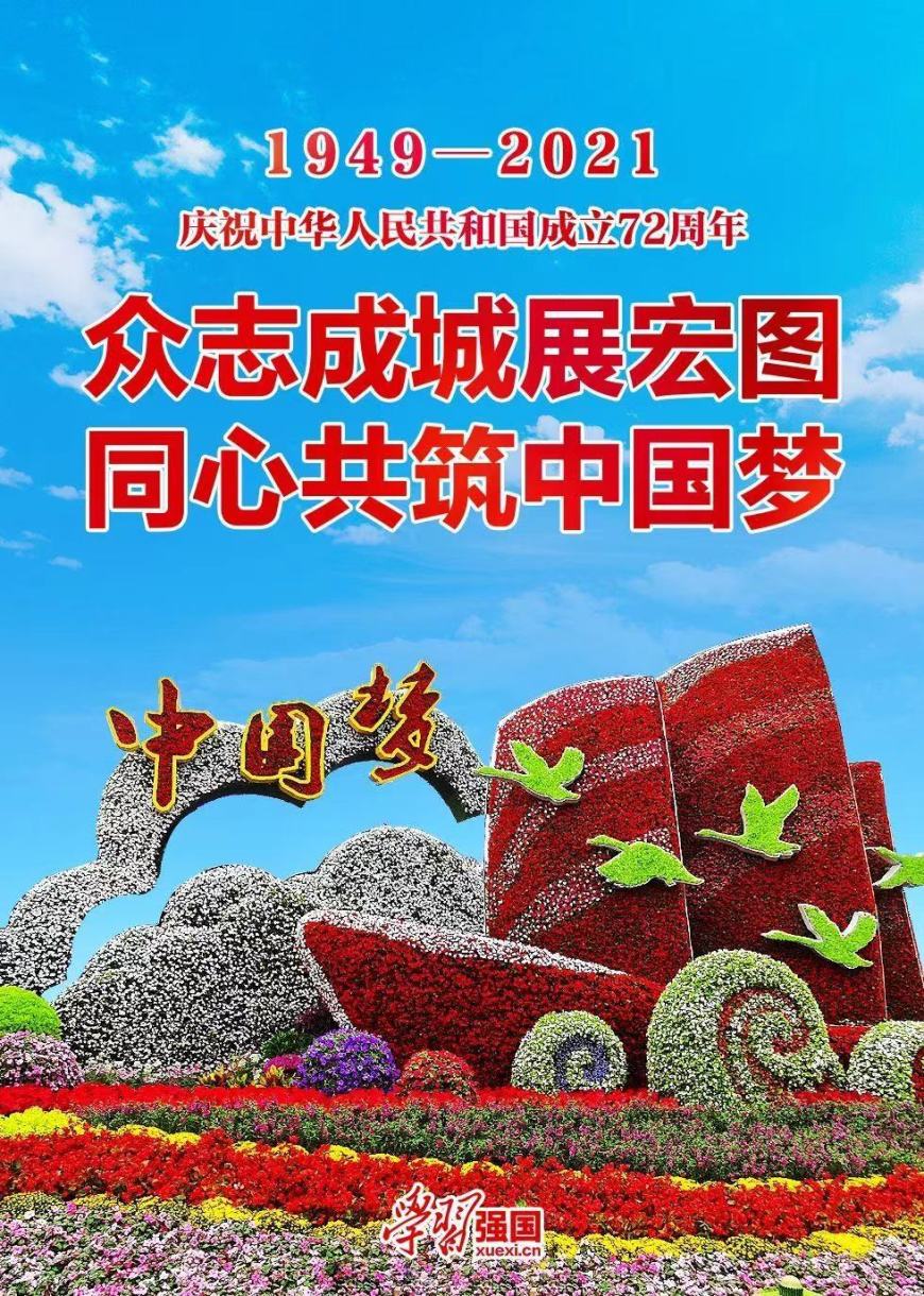 喜迎中华人民共和国成立72周年,72年披荆斩棘,72年风雨兼程,中国共产党团结带领亿万人民创造了新中国波澜壮阔、惊天动地的历史。如今的社会主义中国,实现了从落后时代到大踏步赶上时代、引领时代的历史性跨越,迎来了从站起来、富起来到强起来的伟大飞跃,前所未有地接近实现民族复兴的伟大目标,一个充满希望、充满生机的大国已然屹立于世界东方,感悟历史,鉴往知来,我们倍加珍惜。