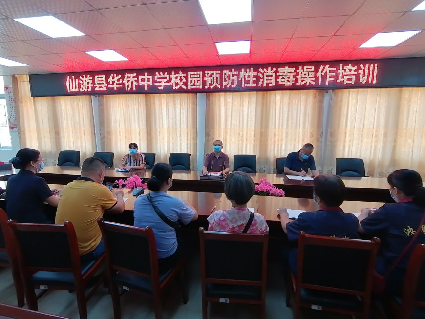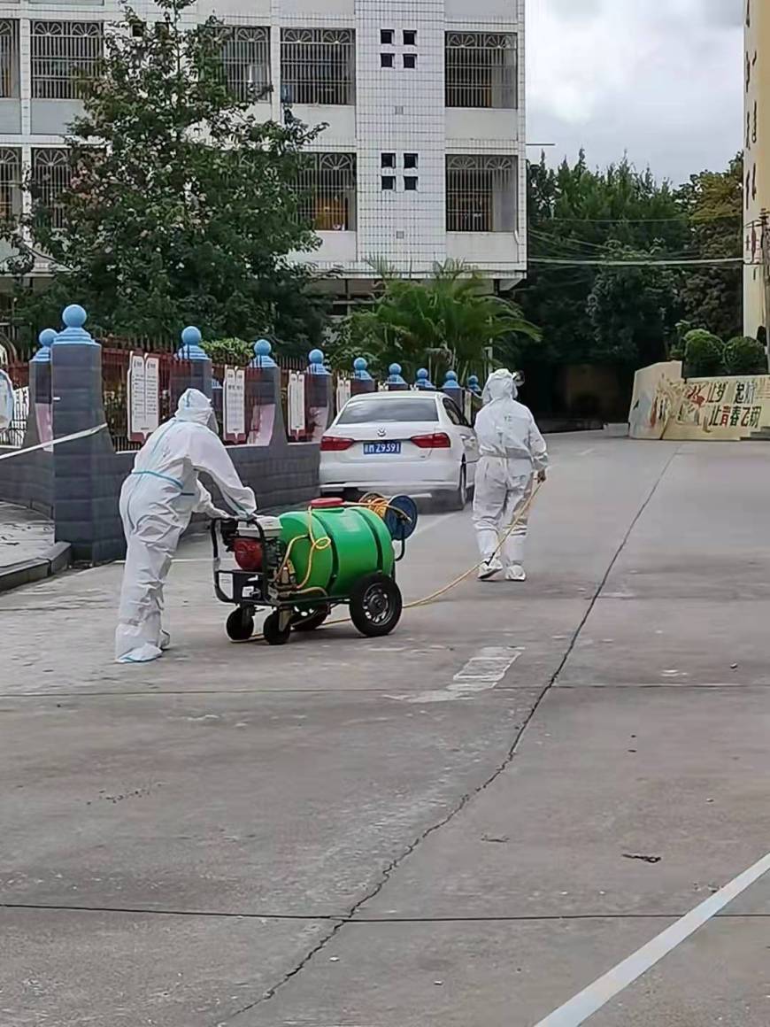 10月8日上午,为恢复线下教学活动做好充足准备确保师生安全顺利返校,仙游县华侨中学开展校园预防性消毒。