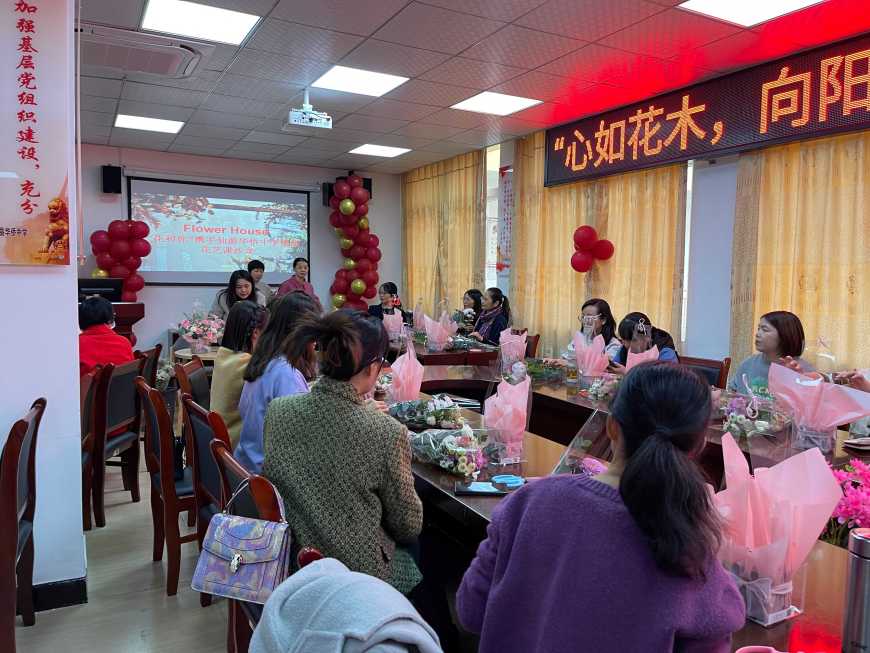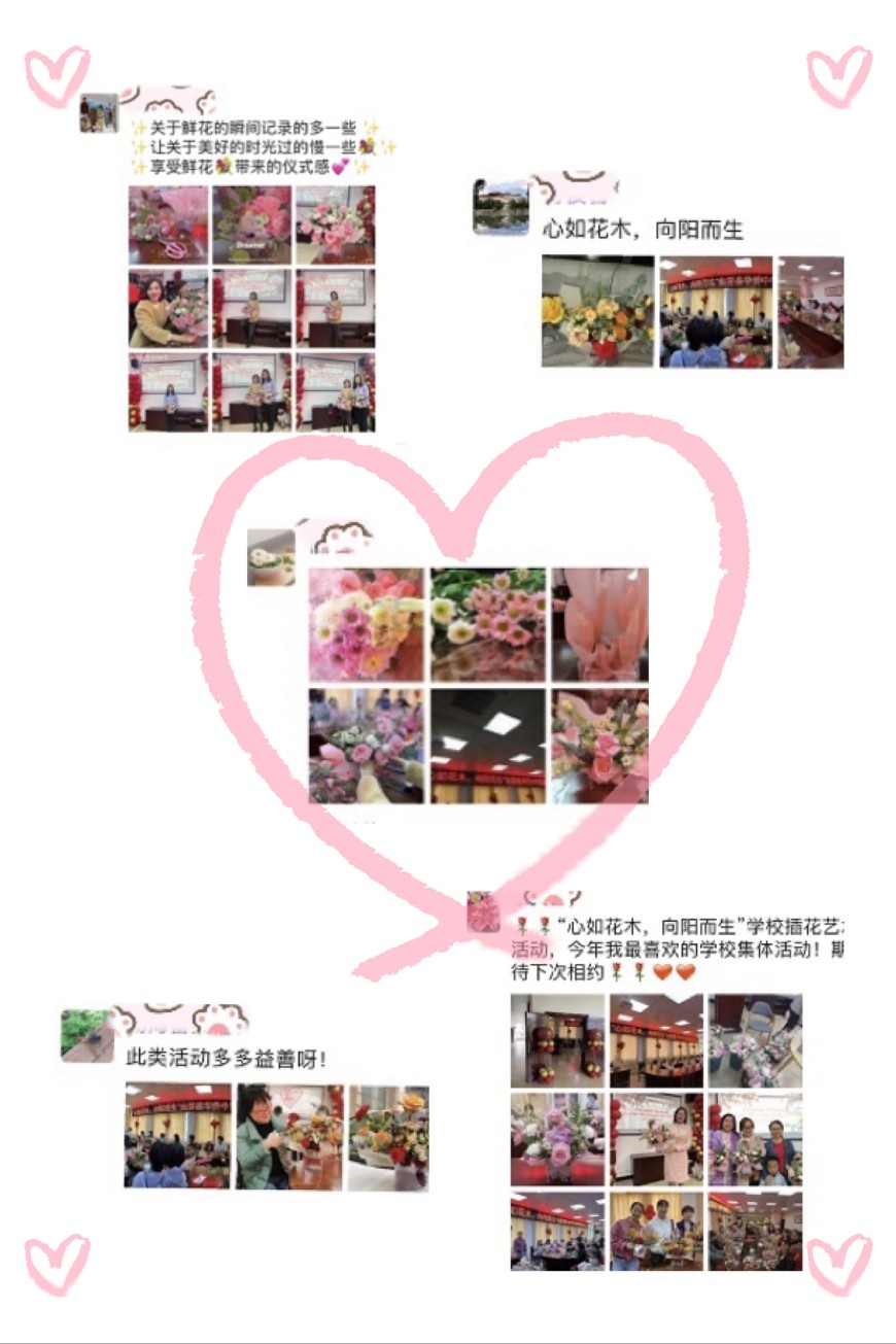 学习插花不仅使教师们感受自然和生命的变化,让老师们在创作和欣赏美丽作品时,提高个人的创造和审美能力,也加强了教师之间的沟通,激发了工作中的热情和凝聚力。教育如同插花,教师如园丁,对学生进行精心的培育,静待花开,终将桃李满园。
