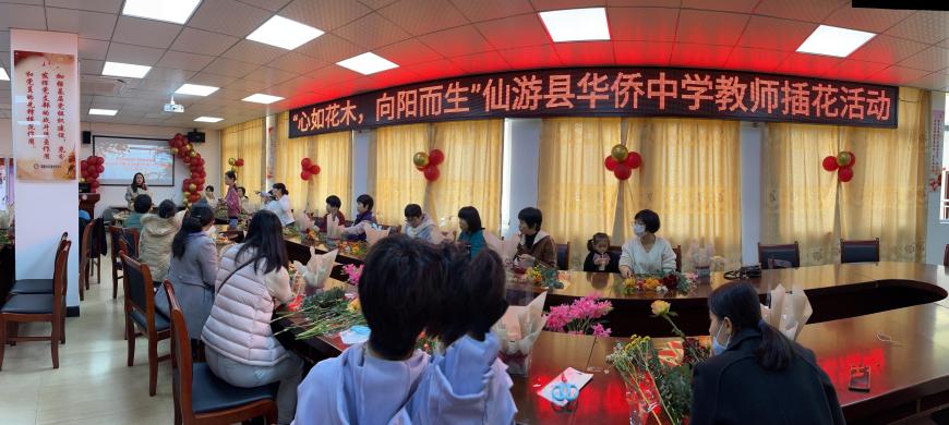 活动伊始,华侨中学特邀的资深花艺老师为全体女教师讲授认识花材、花材的养护以及插花的六大法则。老师们个个听得兴致勃勃,跃跃欲试,同时也迫不及待地在脑海中构思自己的插花作品,都希望能亲手制作出一个富有创意的插花艺术花篮。神风貌。