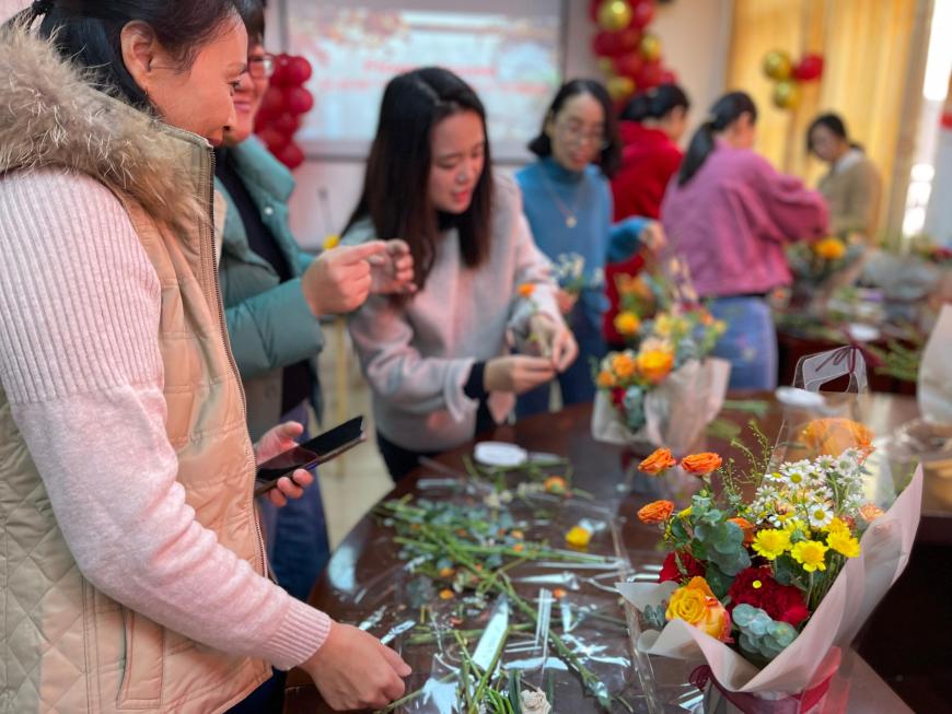一花一世界,一叶一乾坤。为丰富教职工业余文化生活,缓解教师压力,感受花艺魅力,激发教师的工作活力和凝聚力,提升教职工欣赏美、创造美的能力,我校女工会和心理健康教育中心携手“花和你”精心组织策划插花艺术课堂,为教师们提供一个借花木来抒发师情花意的高雅平台,通过对花卉的制作,体验生命的真实与灿烂,让大家在辛勤工作之余享受花样年华,这个冬天爱与你同在。