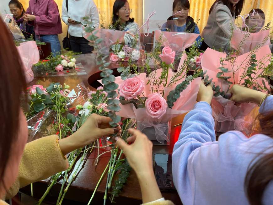 在实际操作环节,老师们你商我量,精心设计,再虚心请教花艺老师进行修整,不多会儿,原有的一支支玫瑰、康乃馨、洋桔梗等花材在老师们的巧手打理下,摇身一变成为了一篮篮风格独特、精美绝伦的花艺作品。大家纷纷表示:“这次活动既学到了一门实用的插花技术,还能带着自己制作的赏心悦目的作品回家,真是开心!”炼的是体力,激活的是生命,弘扬的是个性和青春活力,收获的是笑脸和精神风貌。