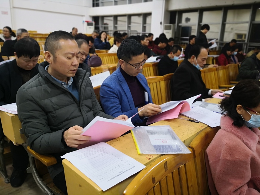 与会人员当场填写民主测评表,对校级领导班子及中层干部进行民主测评。