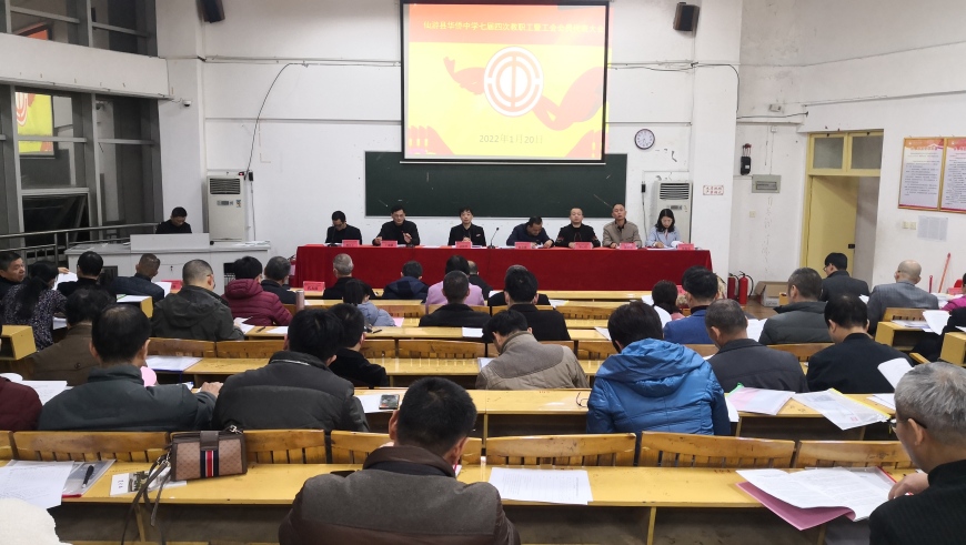 2022年1月20日,仙游县华侨中学七届四次教代会在综合实验楼二层会议室召开。校党支部书记、校长凌建华、副校长王赛静、陈金朋、郑云清、全体教代会代表参加本次教代会,会议由副校长兼工会主席王赛静主持。