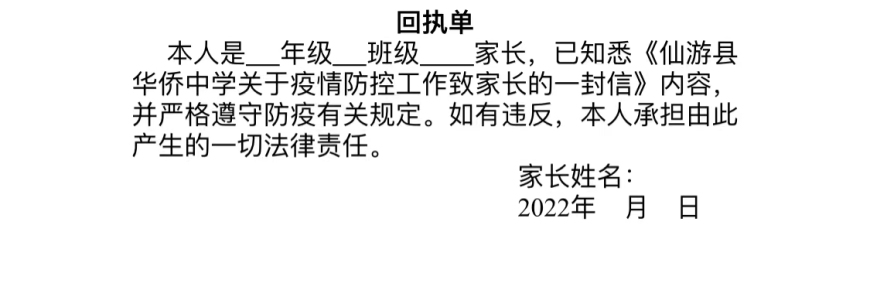 2.减少不必要外出,非必要不离莆。确需离莆的,请配合向学校上报行程,须向学校报告时间表和路线图,要填写《仙游县华侨中学疫情防控期间学生离莆备案表》,以便学校掌握学生离莆行动轨迹。