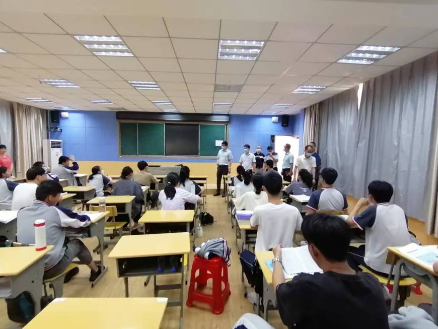林部长针对今年的疫情防控要求,重点了解了学校高考各项应急预案、体温监测、防疫物资、应急隔离室等考务工作的防疫措施和物资的准备情况,听取凌建华校长对我校高考疫情防控、学校考点基本情况等工作详细汇报。他强调学校“高考关系到广大考生和家长的切身利益,要本着对考生、家长和社会负责的态度,高度重视,精心组织,让考生舒心、让家长放心”。