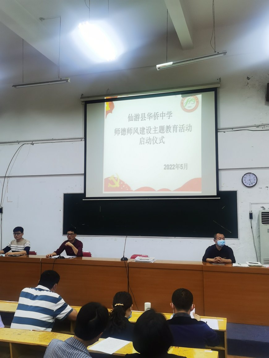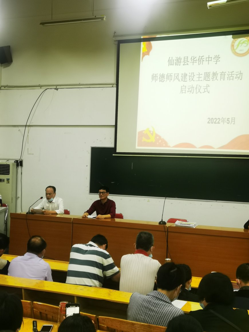 为全面贯彻落实教育部等七部门印发《关于加强和改进¦¦新时代师德师风建设的意见》和《福建省教育厅关于印发<福建省中小学幼儿园教师违反职业道德行为处理实施细则(试行)>的通知》以及《仙游县关于进一步加强新时代教师队伍师德师风建设的实施方案》等文件精神,我校立即着手建立以校党支部书记、校长凌建华为组长的师德师风建设工作领导小组,多途径发动宣传,全方位全员参与,并于2022年5月9日举行师德师风主题建设月启动仪式。