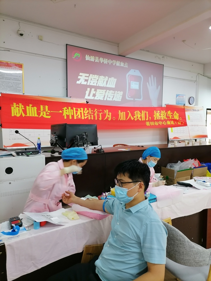 本次献血的老师们是一道亮丽的风景线,既有多次参加无偿献血的“老将”,也有初次上阵的“新兵”。在综合办公楼底层采血点,老师们按照疫情防控期间工作要求,佩戴口罩,认真听取医生讲解献血过程中应该注意的事项,严格按照规定的献血程序,依次有序地填表、录入个人信息、测量各项指标、抽取血液。在整个献血过程老师们始终带着微笑,他们都在用自己的实际行动,传递着爱与感动,老师们鲜红的热血,彰显了仙游教育人的本色与担当,展现了育人之师的优秀品格和大爱风采。
