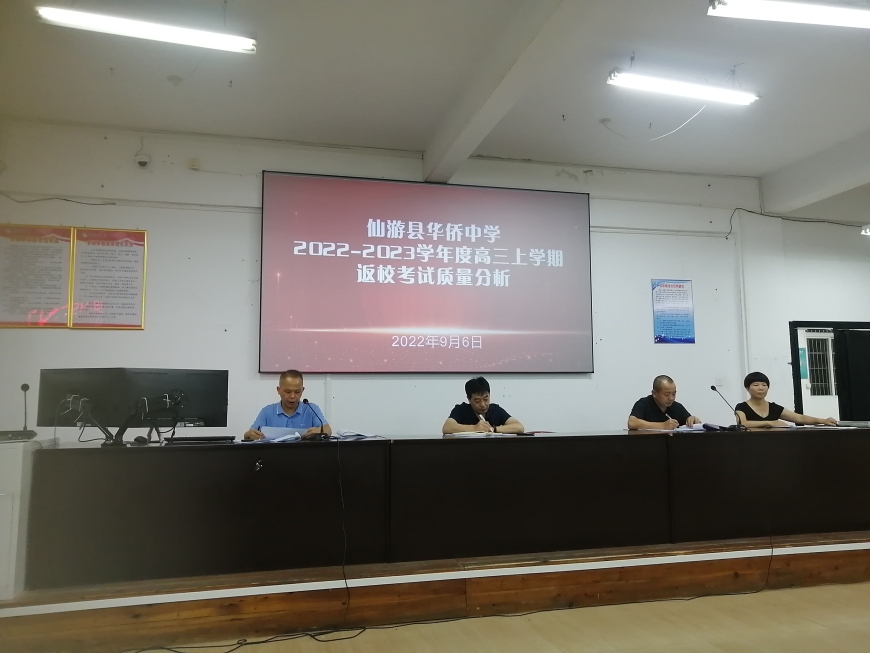 9月6日晚,仙游县华侨中学召开2023届高三年返校考质量分析会。校党支部书记、校长凌建华,分管2023届高三年工作的副校长郑云清以及高三年全体教师参加会议。会议由高三年段长戴美西主持。