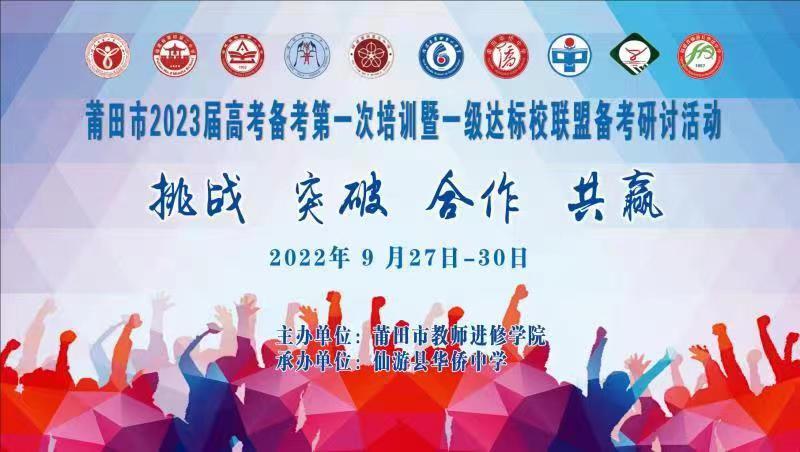 为贯彻落实福建省新高考综合改革精神和我市“提高效率、提升效能、提增效益”的活动部署,精准做好2023届高考备考工作,加强校际交流、实现资源共享、促进合作共赢,由莆田市教育局、市教师进修学院主办,仙游县华侨中学承办的“莆田市一级达标校联盟备考研讨活动暨2023届高考备考第一次培训”活动于2022年9月27日至30日在仙游侨中顺利举行。