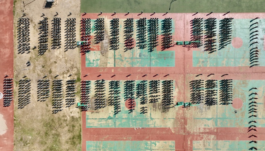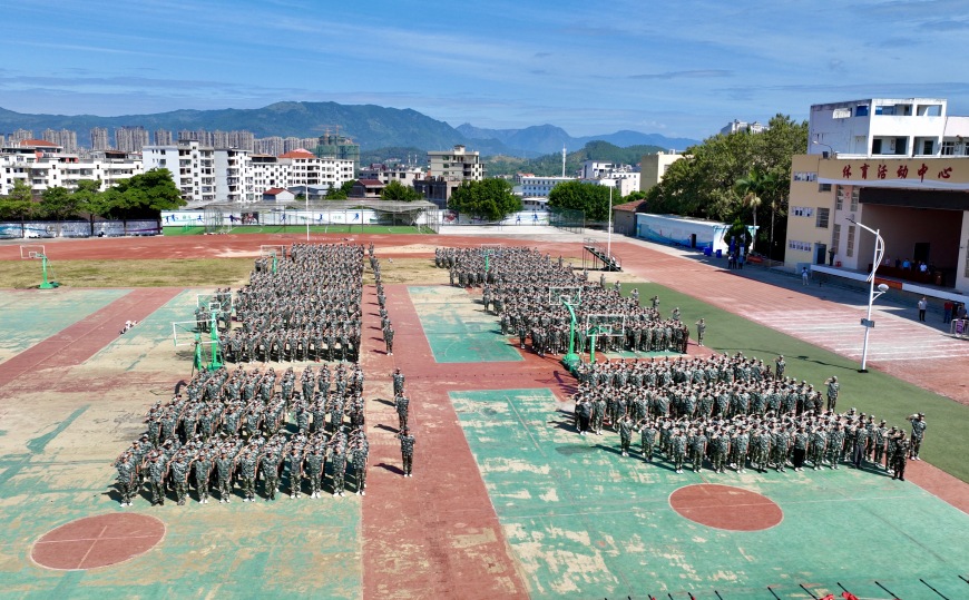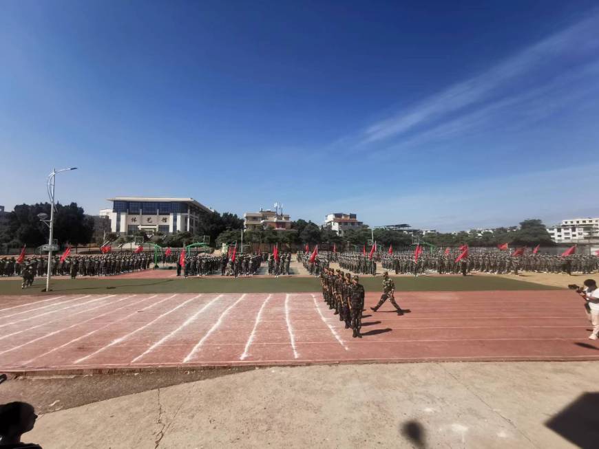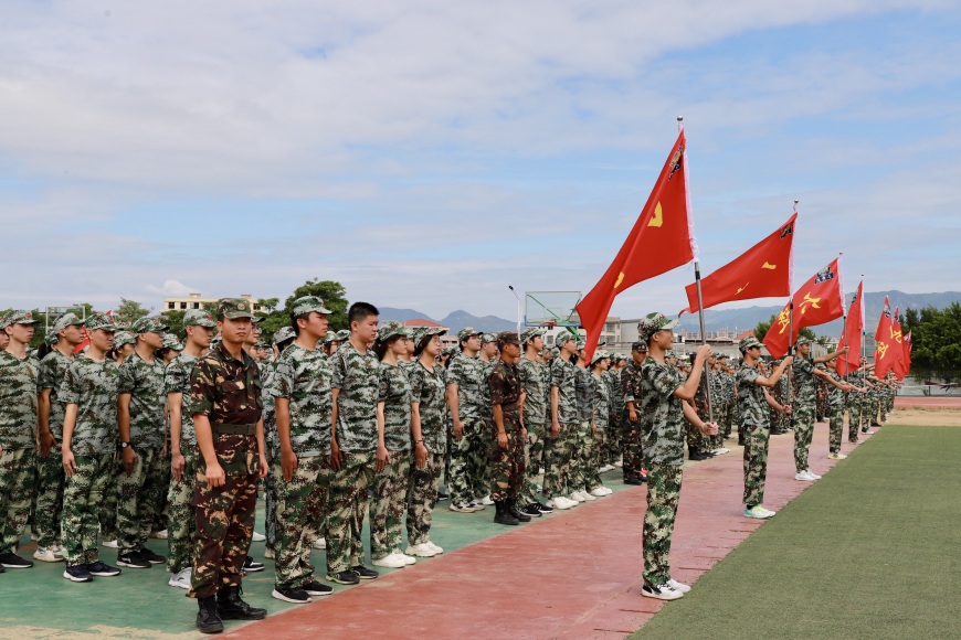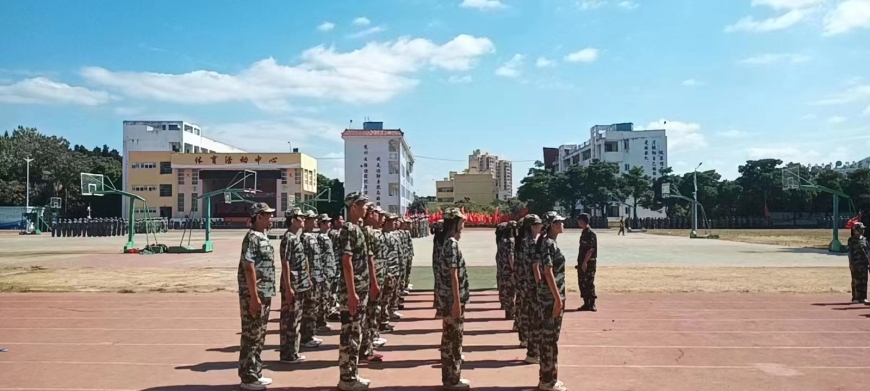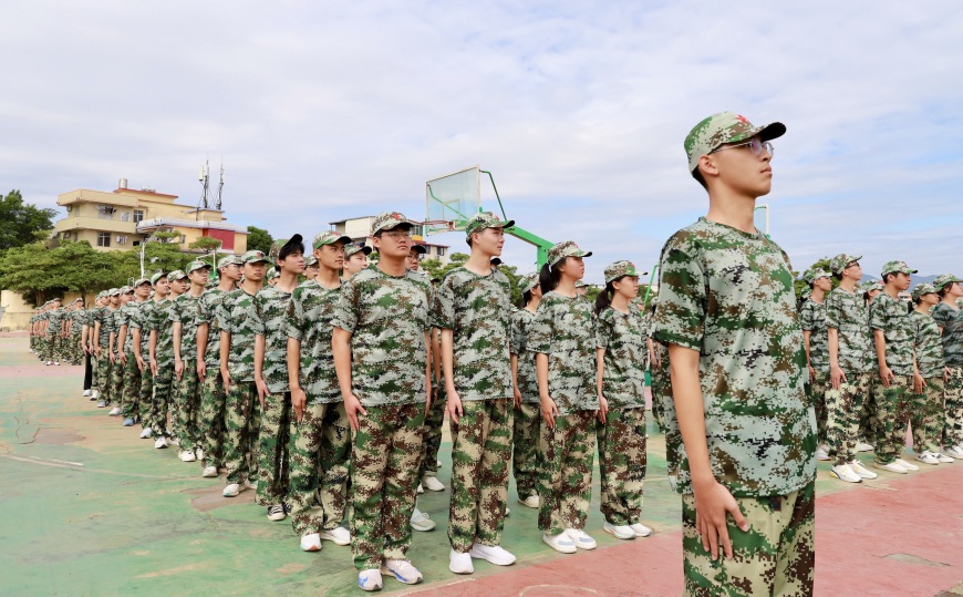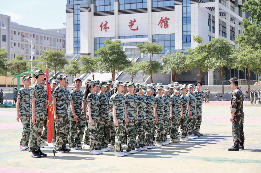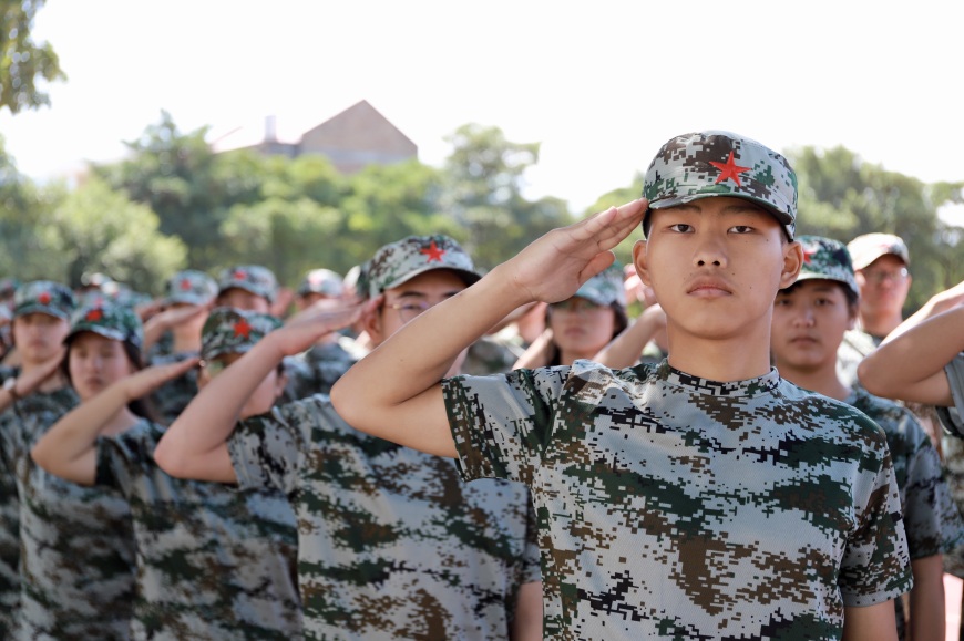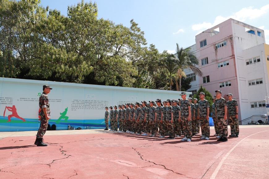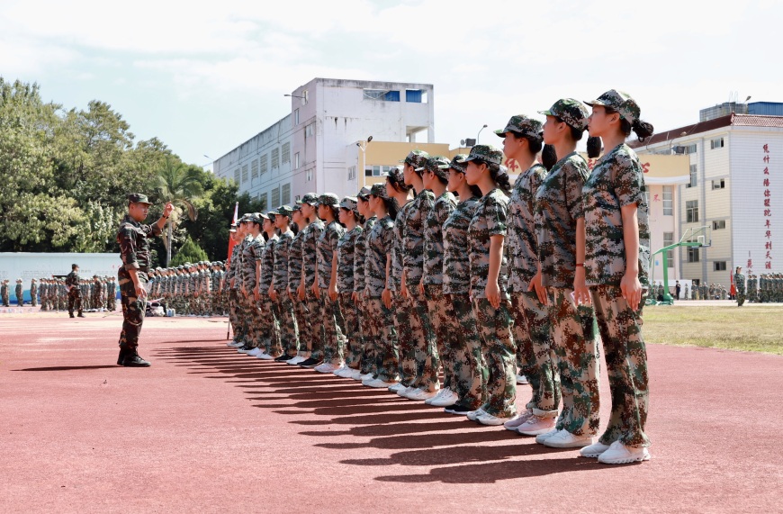 简短的仪式之后,在各班教官的带领下,同学们身着戎装,气宇轩昂地投入到军训中去。