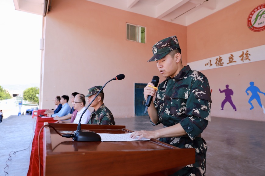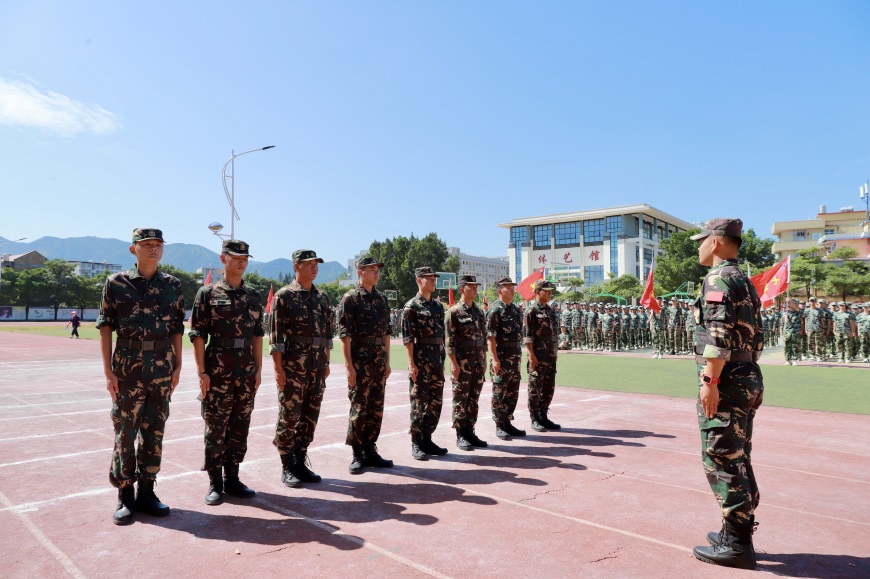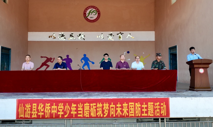 迷彩点燃青春梦,军训淬炼报国志。为全面贯彻党的教育方针,落实立德树人和强军目标根本要求,培养同学们的爱国情操,提高国防意识,磨炼意志品质,增强纪律意识,强化健体观念,10月10日上午10点,仙游侨中隆重举行军训开营仪式,校党支部书记、校长凌建华、校工会主席、副校长王赛静、副校长陈金朋、副校长郑云清、教务处主任李宗祥、政教处主任林德芳出席仪式,开营仪式在雄壮的国歌声中拉开帷幕。