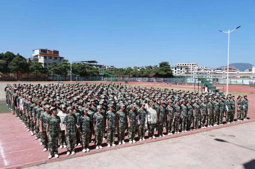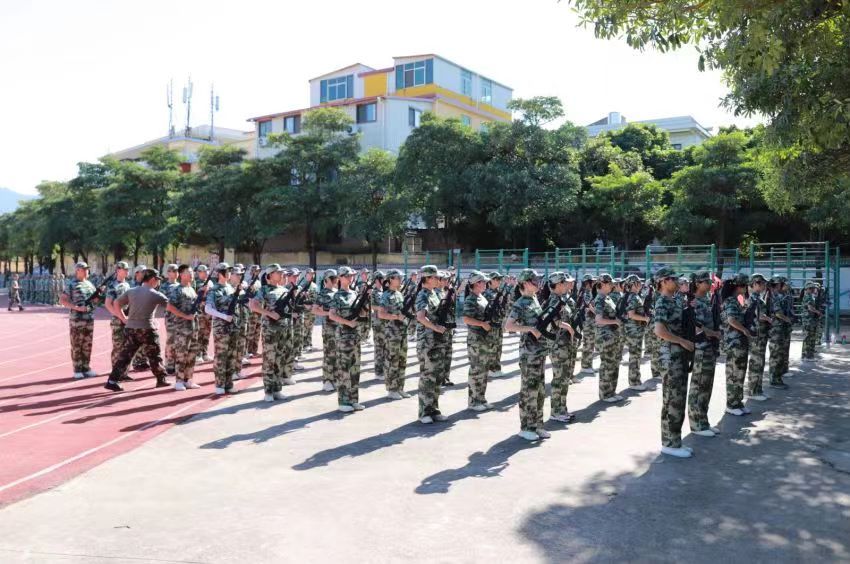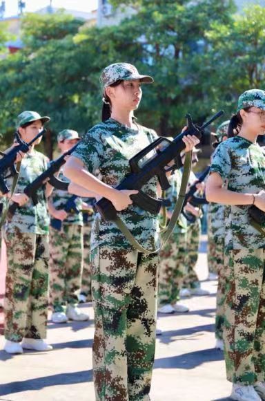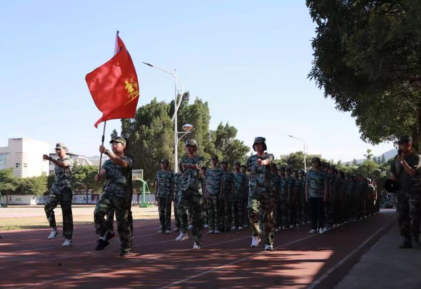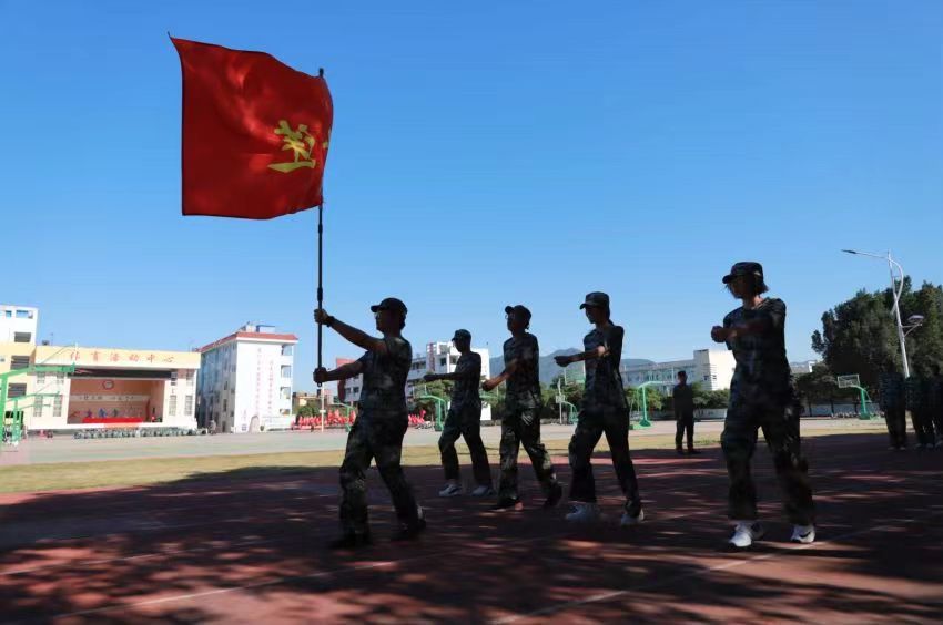 红旗长枪飘如诗,鲜衣怒马少年时。唯有少年多豪放,敢叫日月换新章。烈日长空着军装,口号声中斗志昂。生如夏花向朝阳,勇往直前试锋芒。巾帼须眉皆荣光,势如破竹不可当。目光所及是远方,侨中学子世无双。