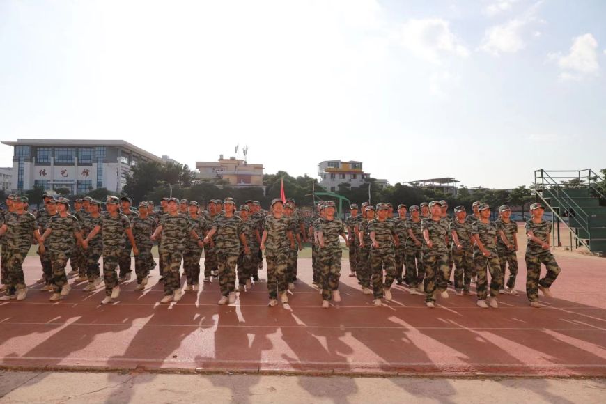 野蛮其体魄,文明其精神。广袤山河,当用青春丈量。迷彩飞扬忠心炽,青春许国正当时。军训场上,各教官带领新生整理队形,形成方阵,学习立正、稍息、跨立、停止间转法、齐步行进等单兵队列基础动作和跑操。教官严格要求整理军容和端正军姿,每一个动作教官都亲自分解示范与指导,并手把手纠正基本的动作。从挺胸到摆臂,从迈步到绷脚,都要经过教官的严格把关。