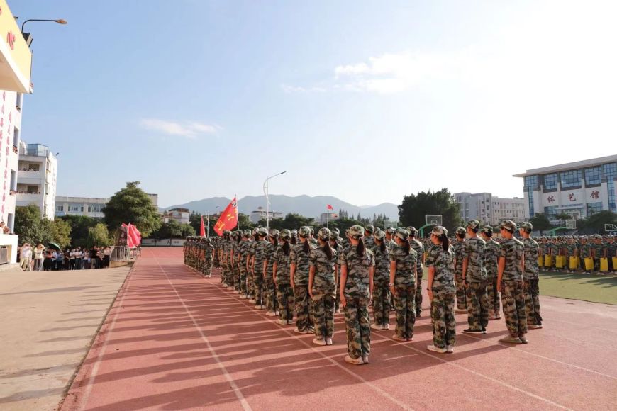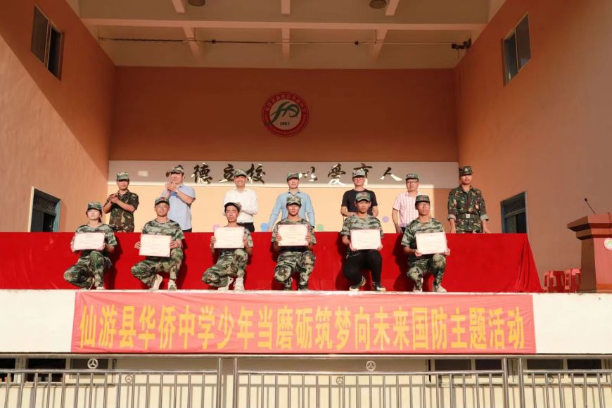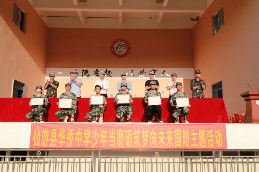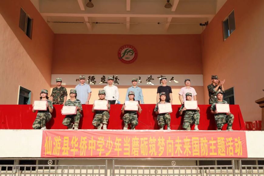2022年10月10日,仙游侨中2022级高一高二学长军训开幕式隆重举行,校党支部书记、校长凌建华,副校长王赛静、陈金朋、郑云清,教务处主任李宗祥,政教处主任林德芳等出席会议。校党支部书记、校长凌建华为军训庄严授旗,学生们着装整齐、精神抖擞、斗志昂扬,在领誓人温莹莹的带领下庄严宣誓,表达了全体学生认真参训、严守纪律的决心与信念。