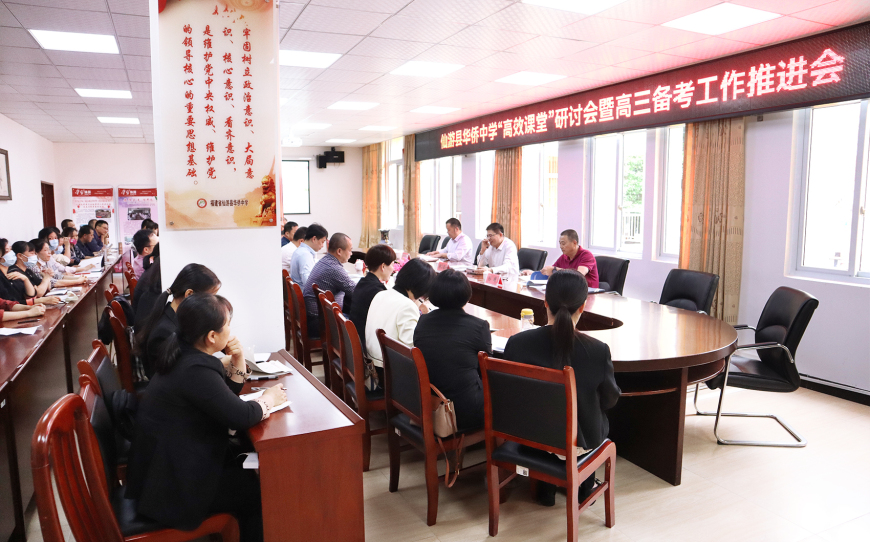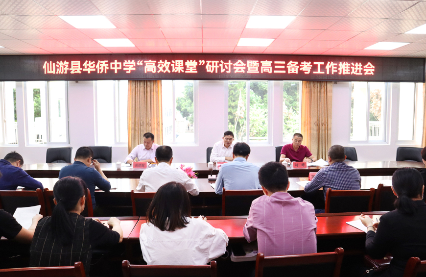 为进一步解放思想,明晰我县课堂教学改革的基本思路,增强改革信心、明确改革目标,探索新形势下我县全面提高教育教学质量的有效途径,10月18日,仙游县委常委、宣传部部长林宗储在仙游县人民政府督导室副主任林峰、教师进修学校副校长黄建辉的陪同下到仙游华侨中学开展高效课堂研讨会暨高三备考工作推进会。校党支部书记、校长凌建华、副校长陈金朋、郑云清、教务处主任李宗祥、教研室主任林朝辉、高三年班主任、备课组长和初中部教师代表共同参加。