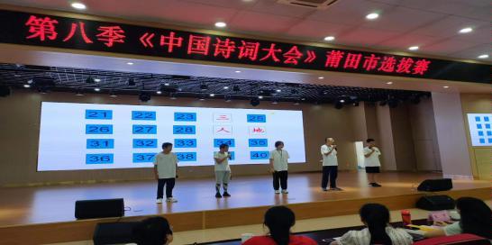我校学子八年(1)班陈凌云勇夺第八季《中国诗词大会》莆田市选拔赛中学组冠军、八年(3)班茅溢智荣获莆田市诗词比赛二等奖,两位选手双双入选莆田市诗词集训决赛。
