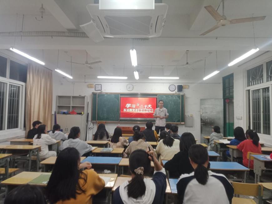 为深入学习贯彻党的二十大精神,激励全校广大团员青年学生心系国家事、肩扛国家责,深刻认识自己的责任与使命,坚定爱党爱国的崇高信念,11月3日晚,仙游华侨中学团委开展 “学习二十大,永远跟党走,奋进新征程”主题学习活动。全校各级团干部、青年学生代表参加会议,校团委负责人陈腾飞主持学习活动。