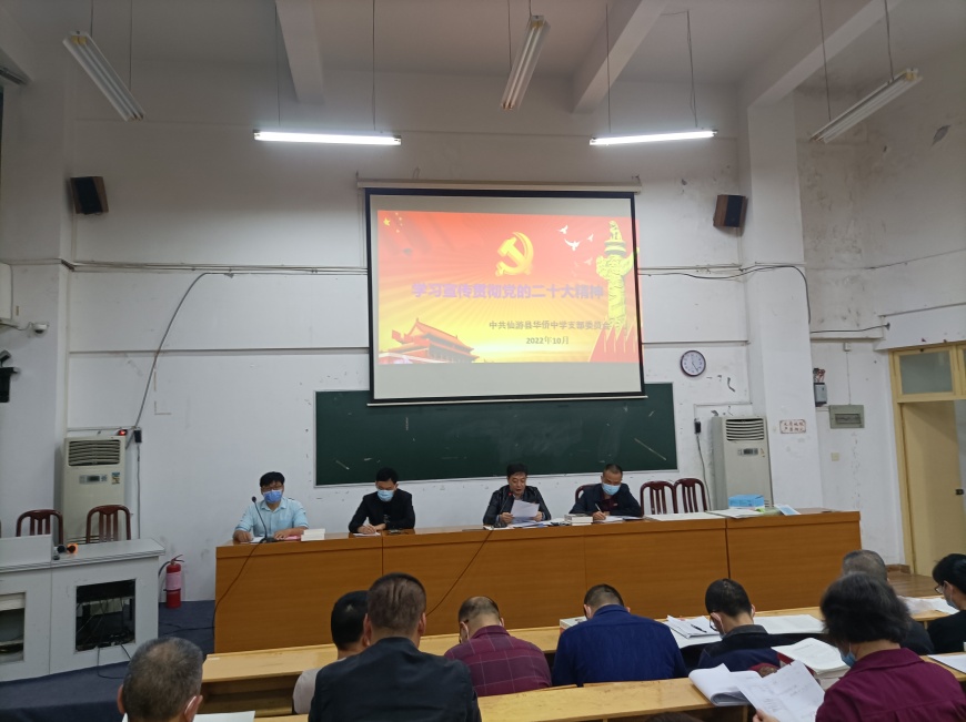 近日,仙游县华侨中学召开全体教职工大会,传达学习党的二十大和二十届一中全会精神,并结合学校实际,提出贯彻落实意见。学校党支部书记、校长凌建华主持会议并讲话。