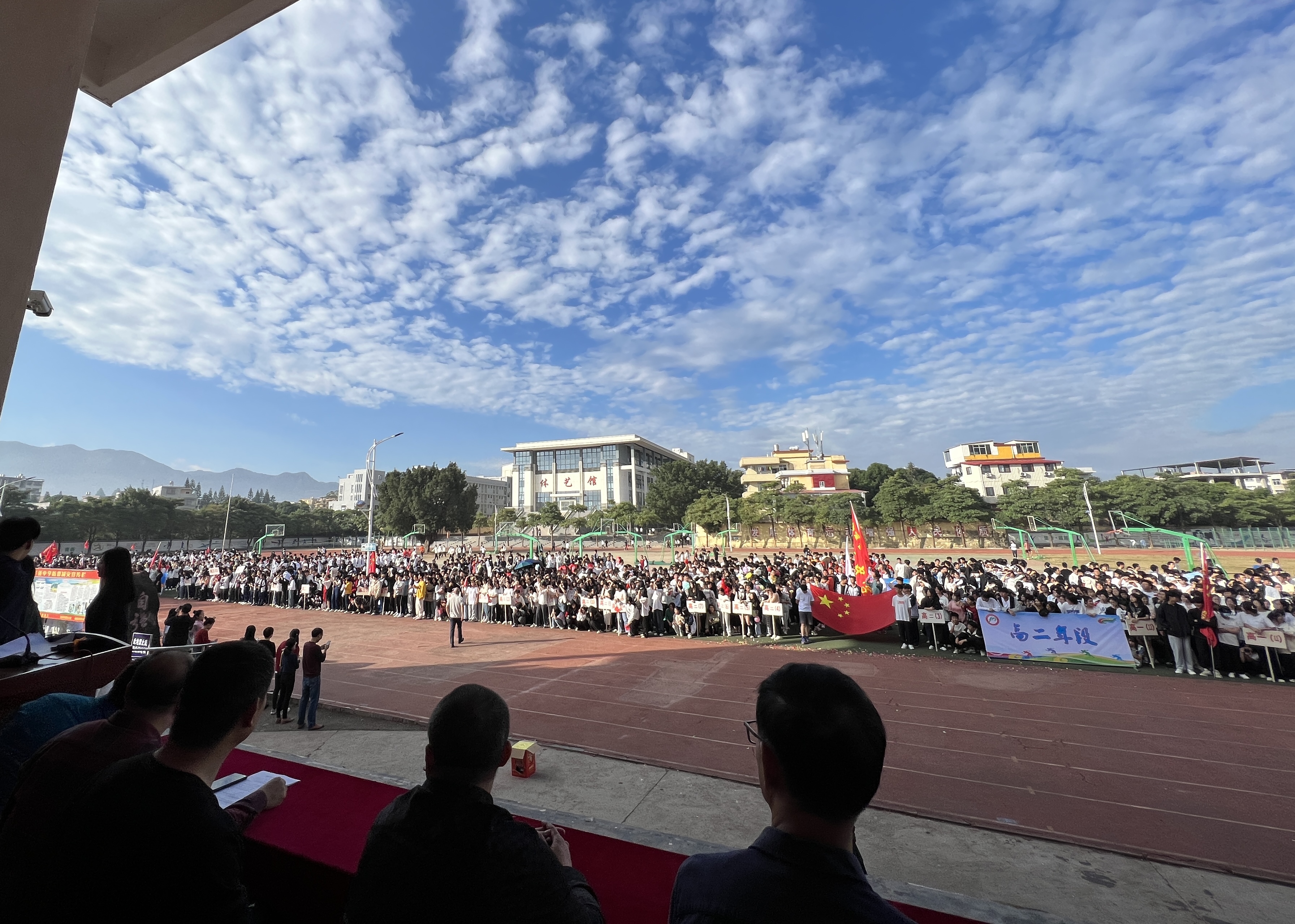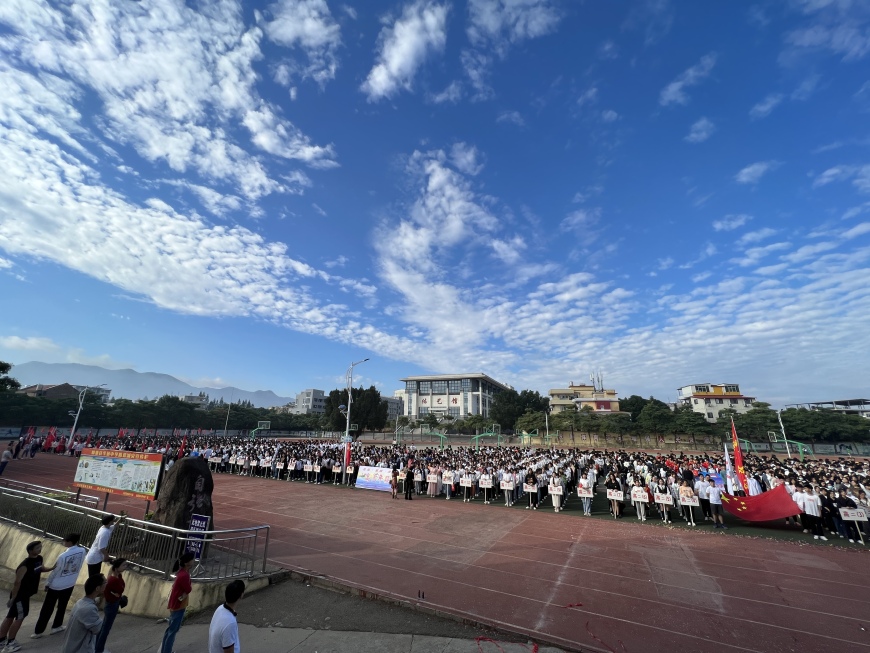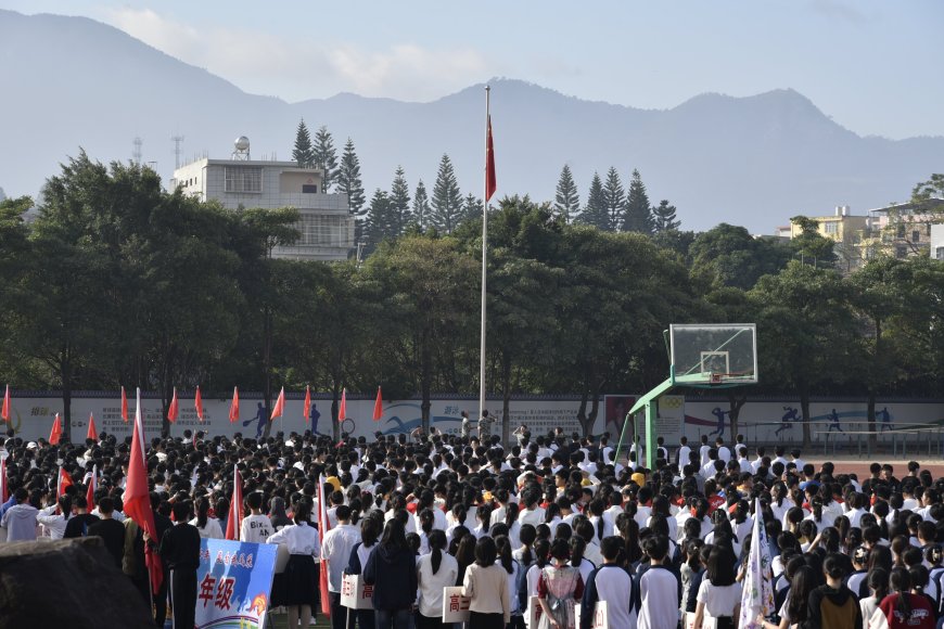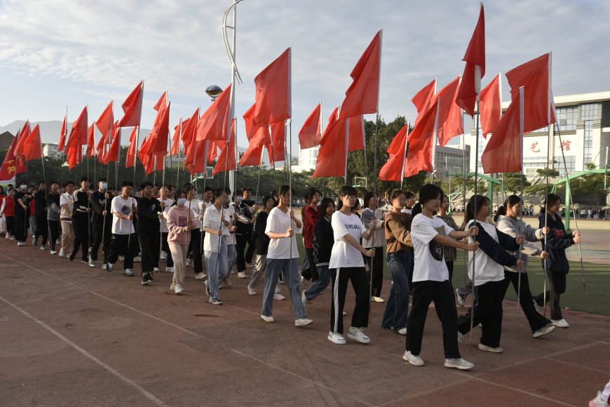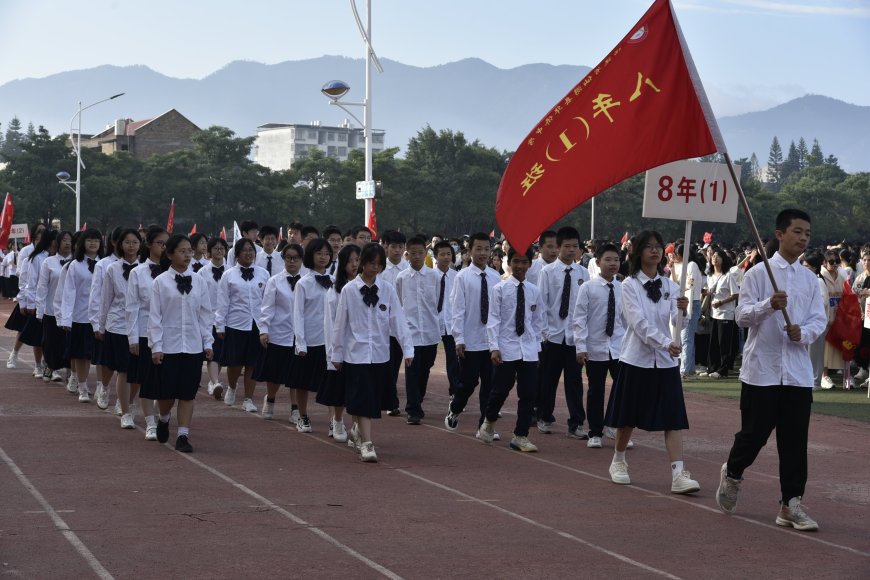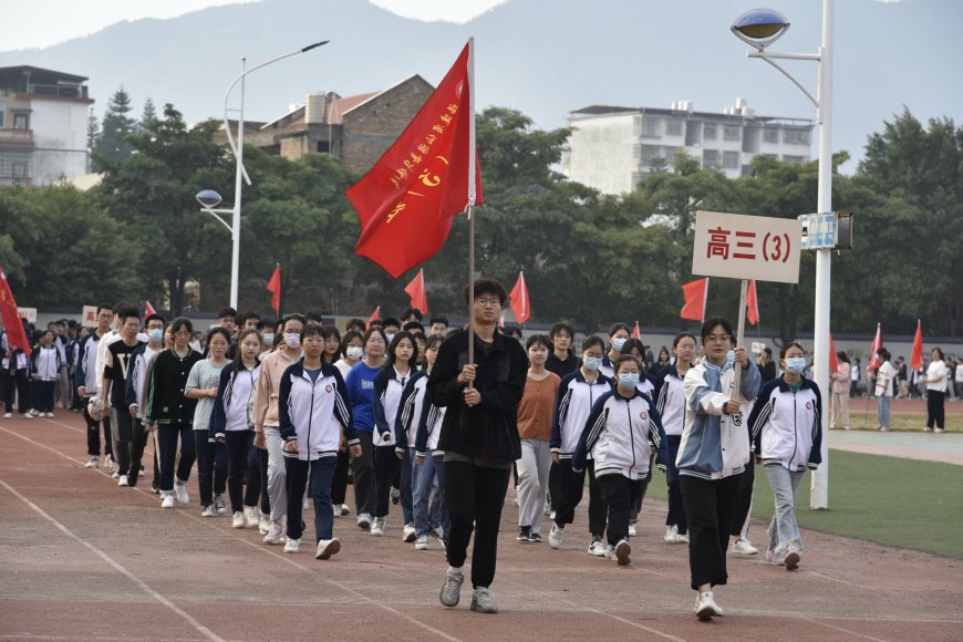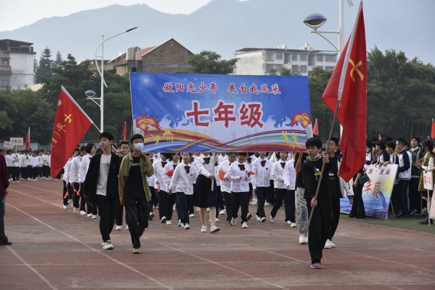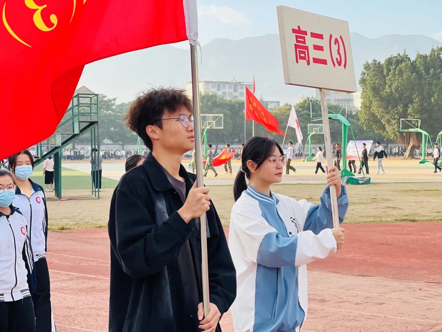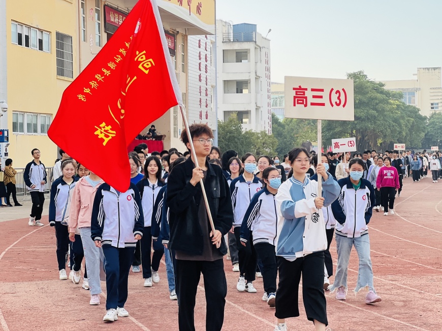 11月17日上午,我校阳光体育运动暨2022年校运会在田径运动场隆重开幕。校党支部书记、校长凌建华、副校长王赛静、陈金朋、郑云清以及学校各处室负责人、年段长、全体班主任等出席了开幕式。大会由政教处主任林德芳主持。